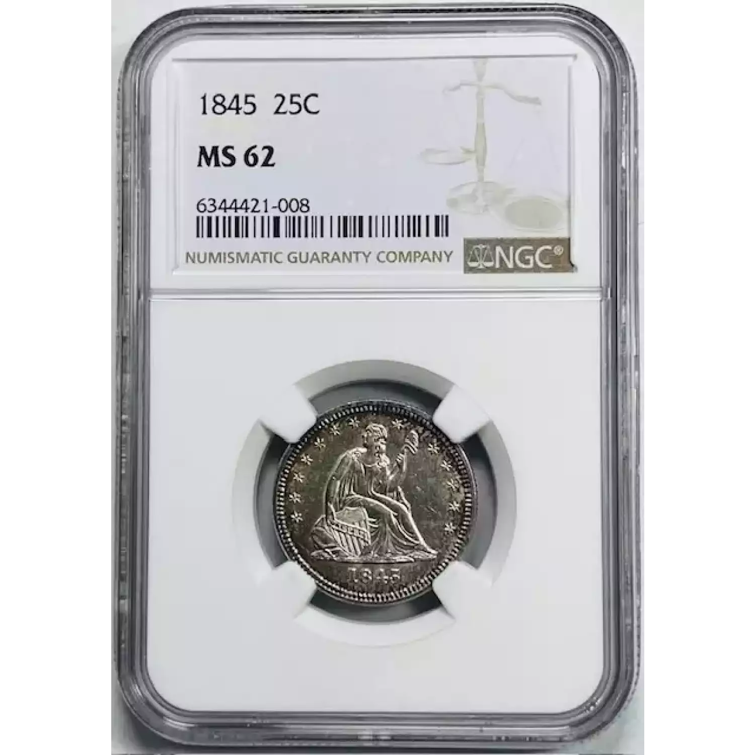 1845 Seated Liberty Quarter NGC MS-62