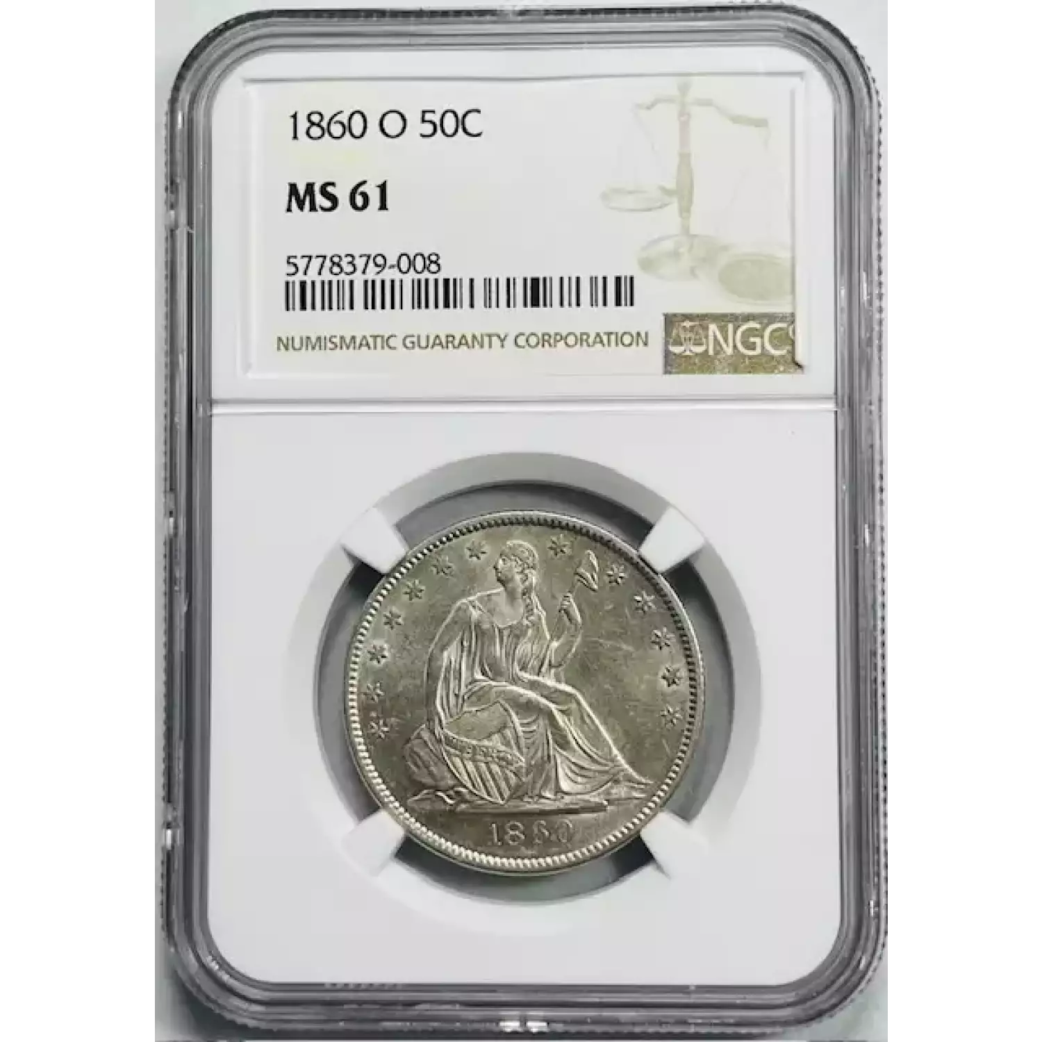 1860-O Half Dollars Liberty Seated NGC MS-61