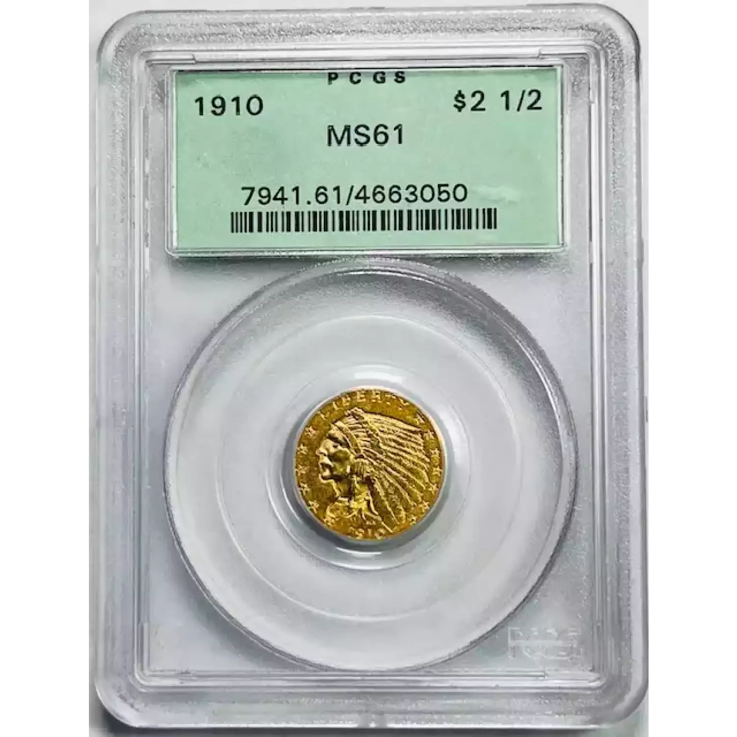 1910 Gold Quarter Eagles $2 1/2 Indian Head PCGS MS-61 Old Green Holder!
