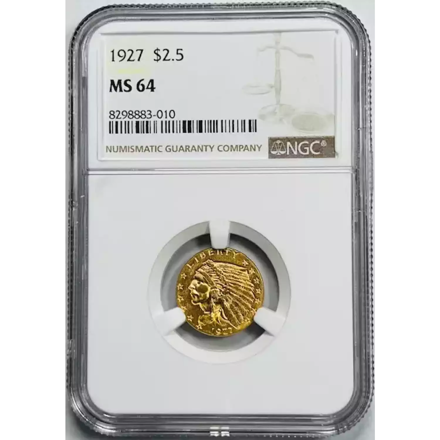 1927 Gold Quarter Eagles $2 1/2 Indian Head NGC MS-64