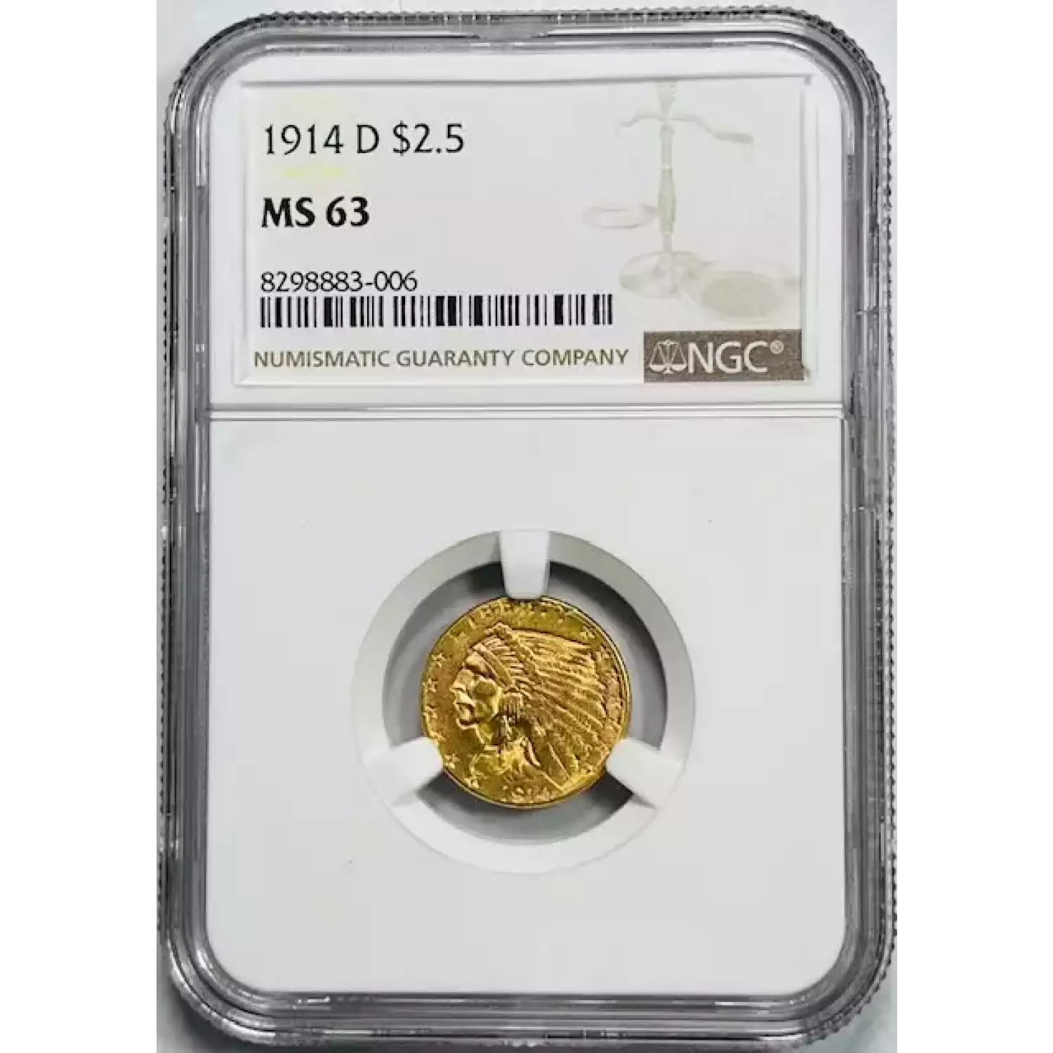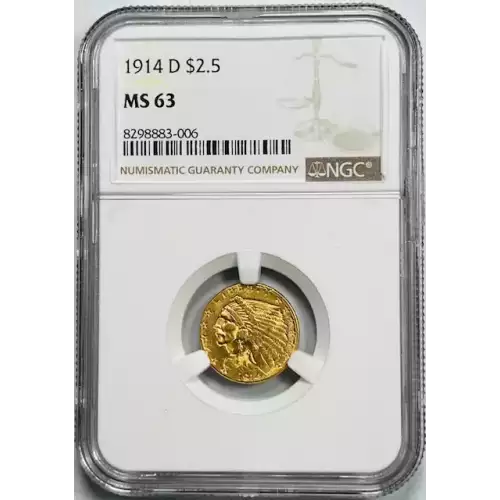 1914-D Gold Quarter Eagles $2 1/2 Indian Head NGC MS-63