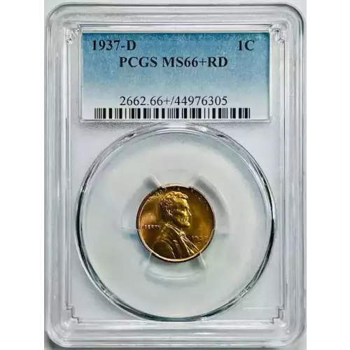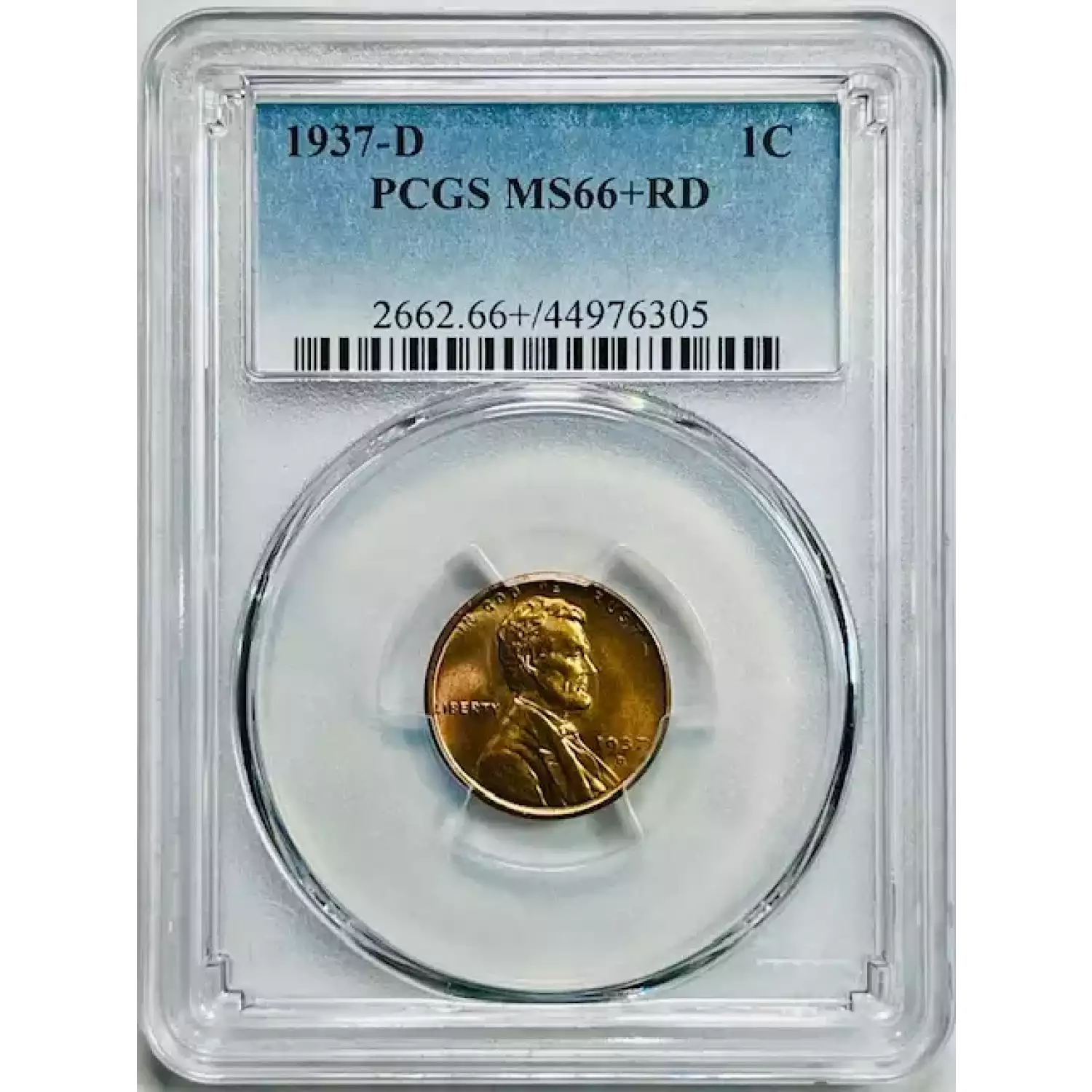 1937-D Small Cents Lincoln, Wheat Ears Reverse PCGS MS-66+ RD