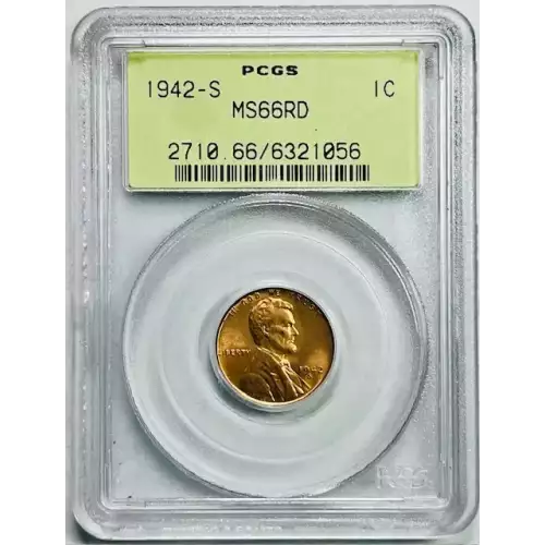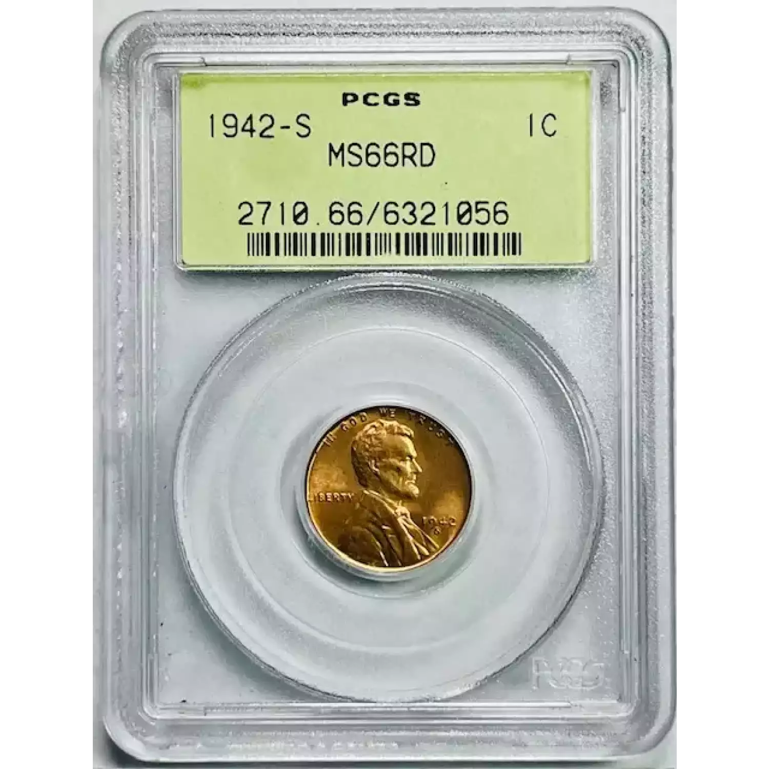 1942-S Small Cents Lincoln, Wheat Ears Reverse PCGS MS-66 RD Old Green Holder!