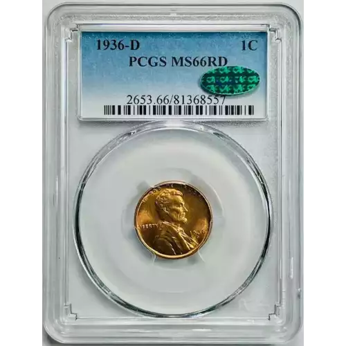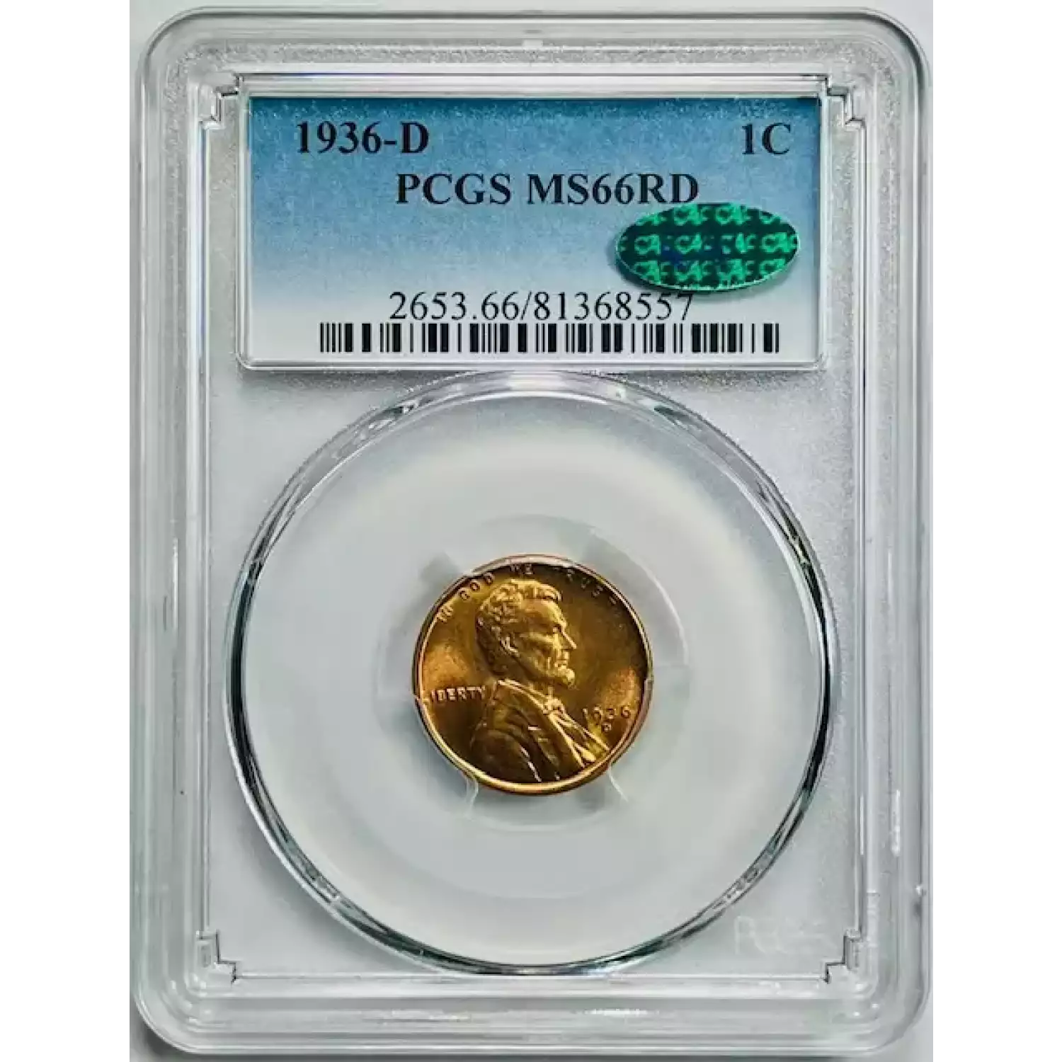 1936-D Small Cents Lincoln, Wheat Ears Reverse PCGS MS-66 RD Low CAC Pop! CAC