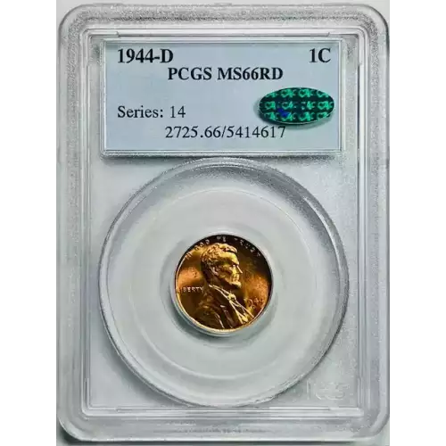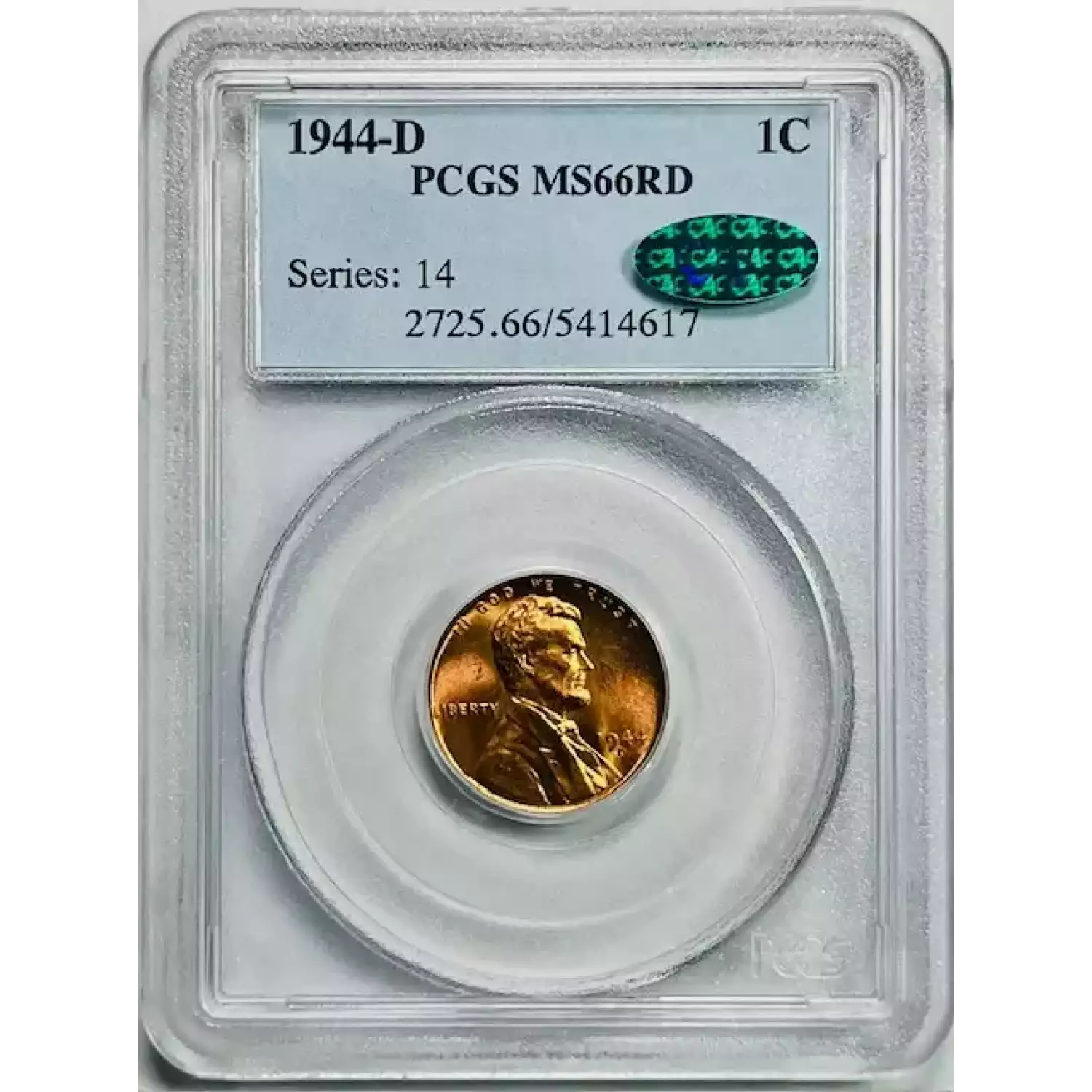 1944-D Small Cents Lincoln, Wheat Ears Reverse PCGS MS-66 RD CAC