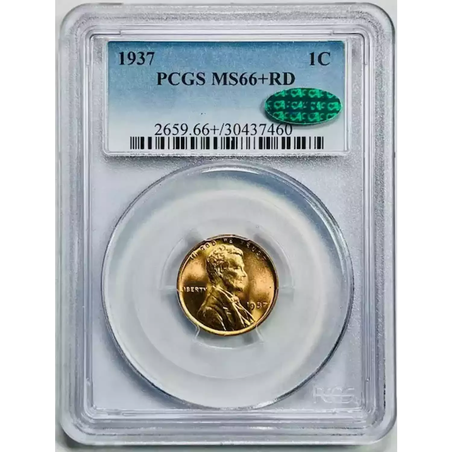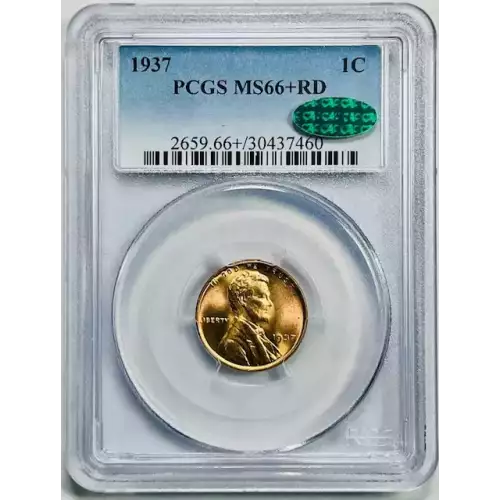 1937 Small Cents Lincoln, Wheat Ears Reverse PCGS MS-66+ RD CAC