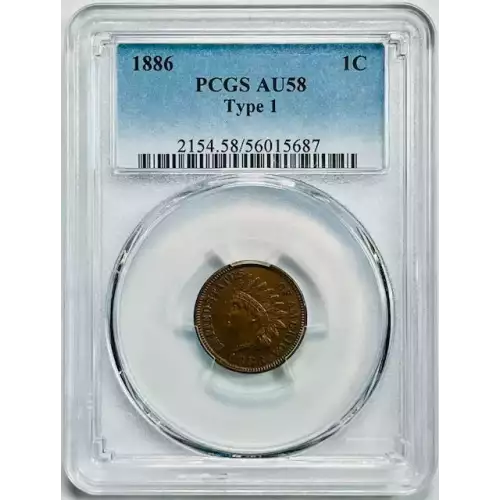 1886 Small Cents Indian Head PCGS AU-58 BN Type 1