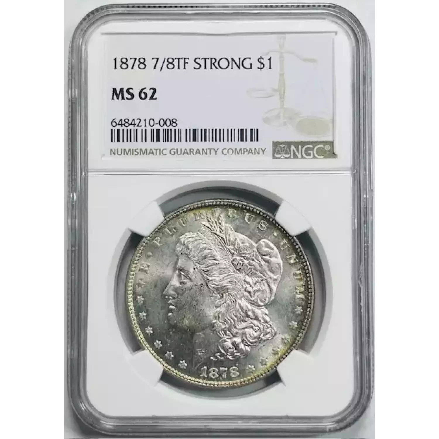 1878 Morgan Silver Dollar NGC MS-62 7/8TF Stong