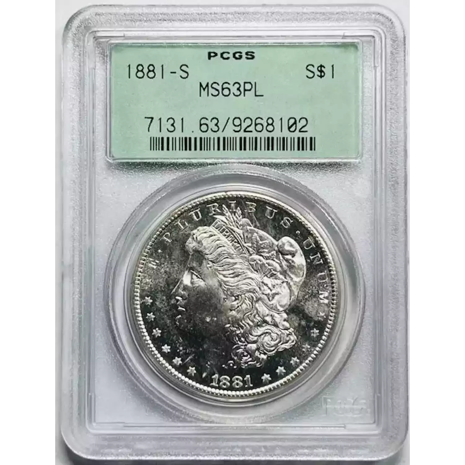 1881-S Morgan Silver Dollar PCGS MS-63 PL Old Green Holder