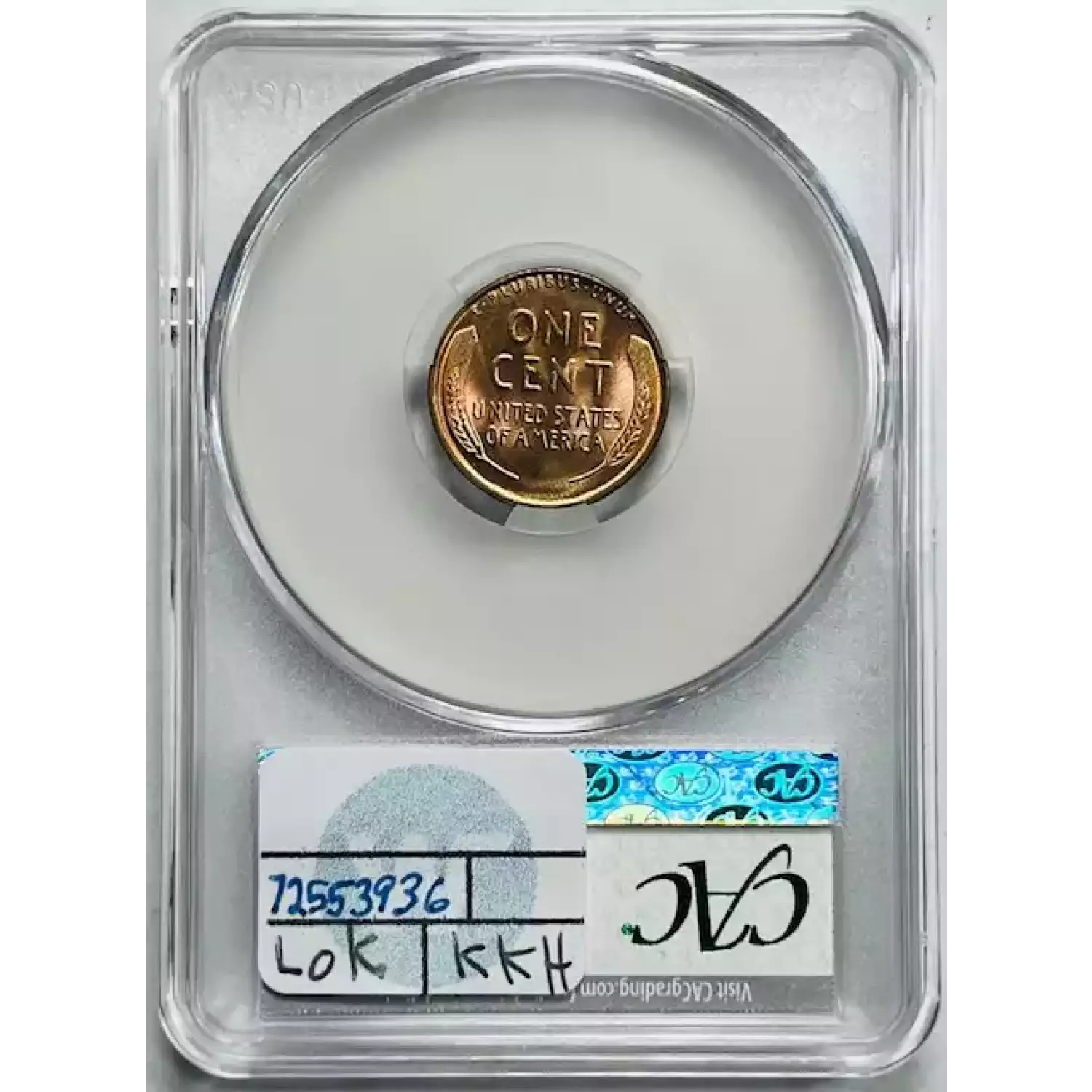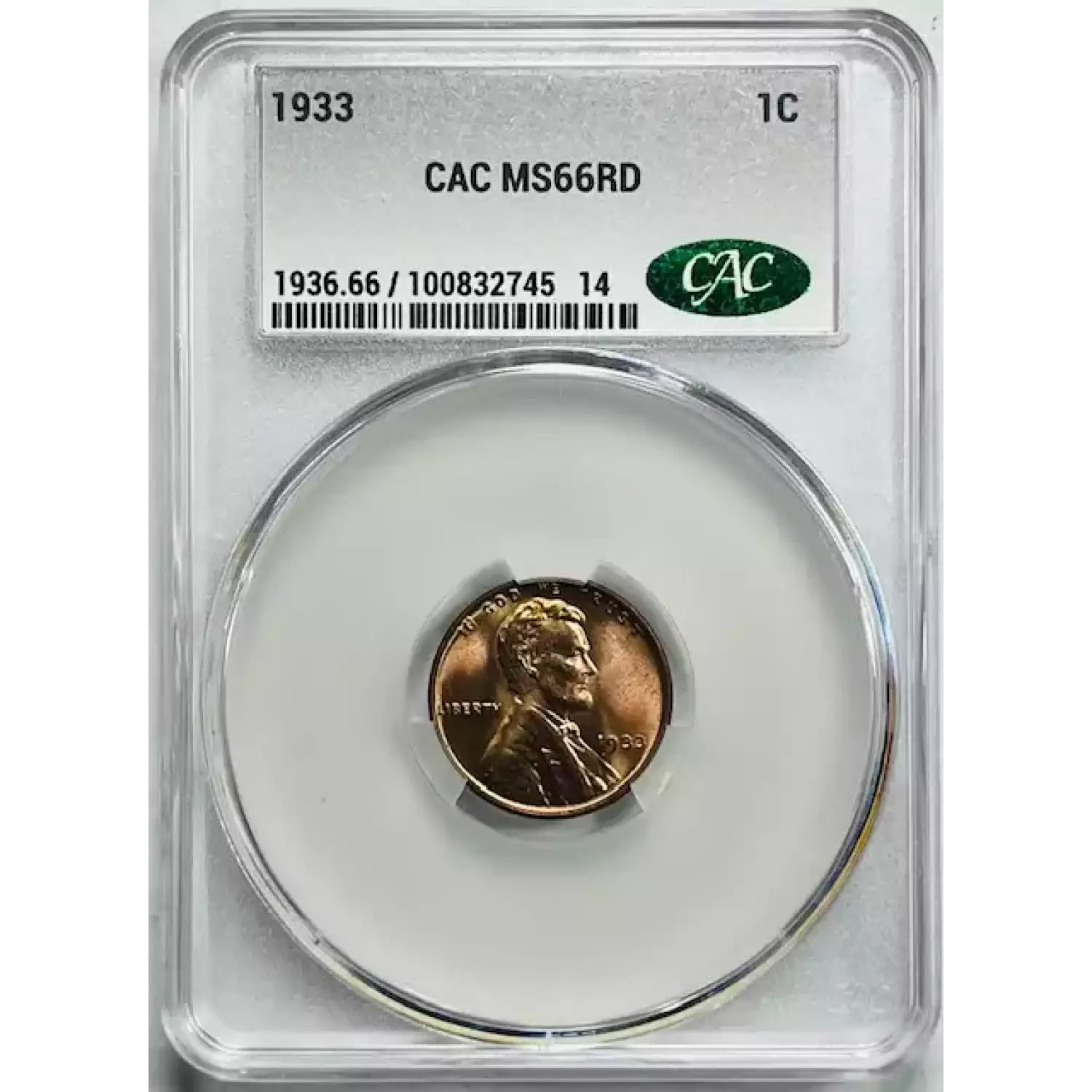 1933 Small Cents Lincoln, Wheat Ears Reverse CACG MS 66 RD CAC