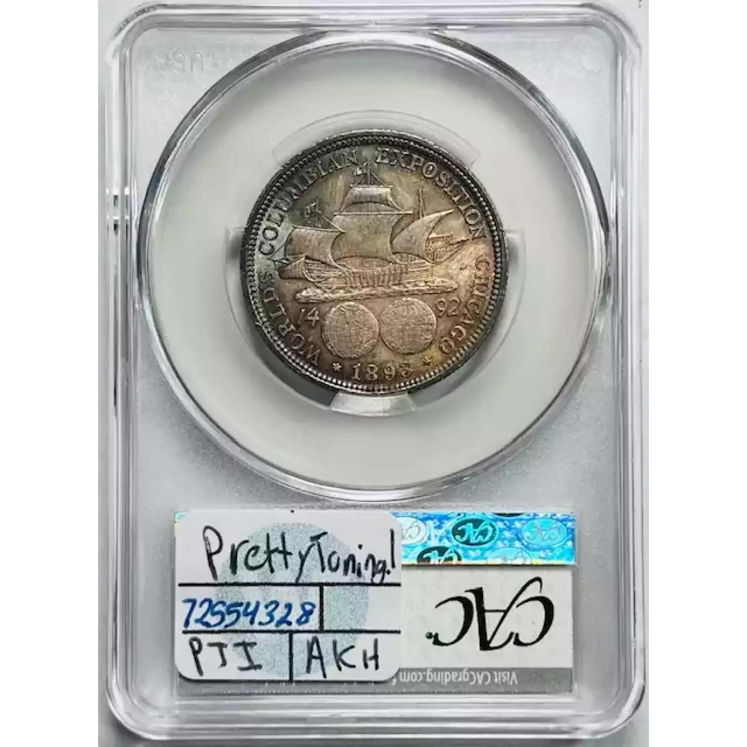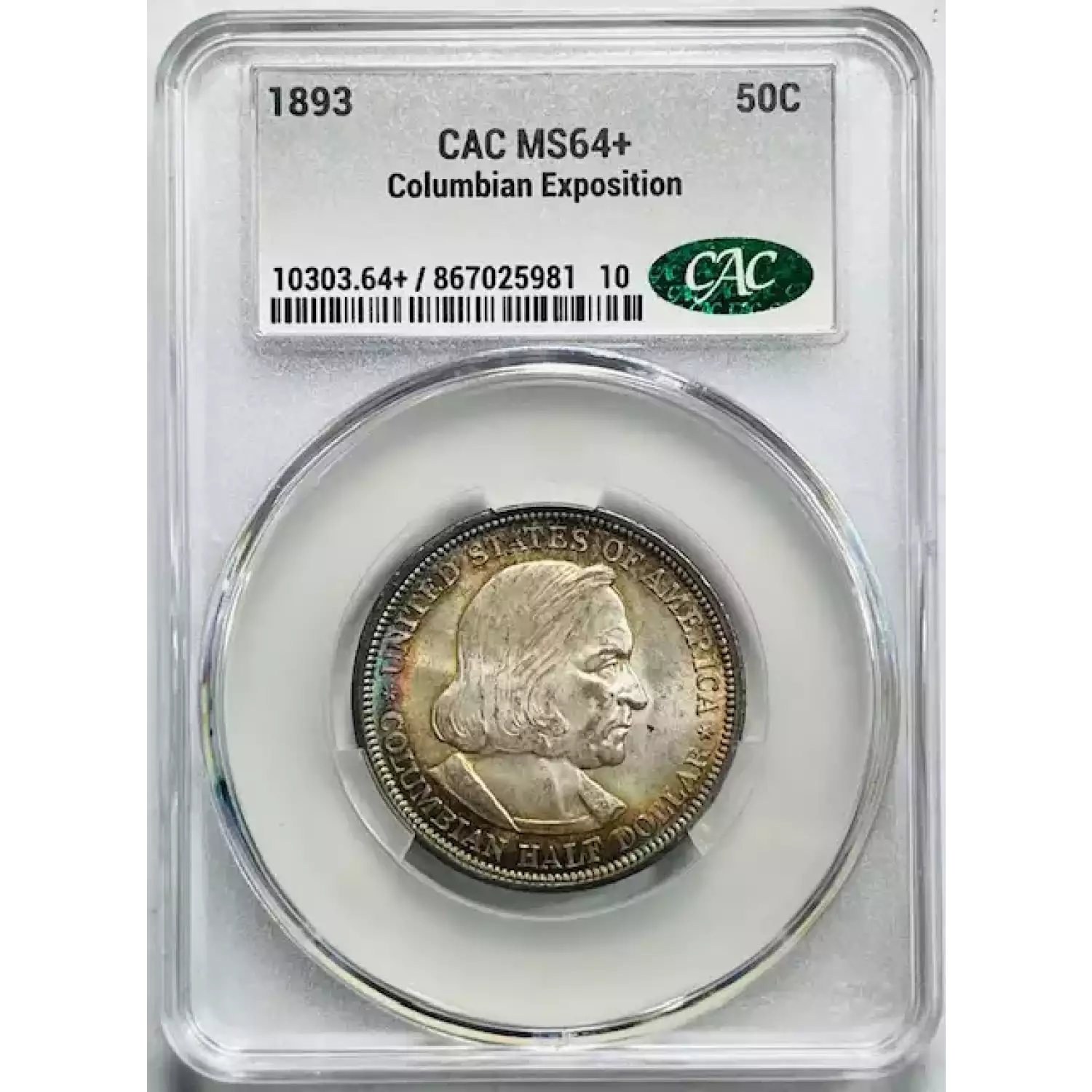 1893 Classic Commemorative World's Columbian Exposition Half Dollar CACG MS 64+ Pretty Toning! CAC