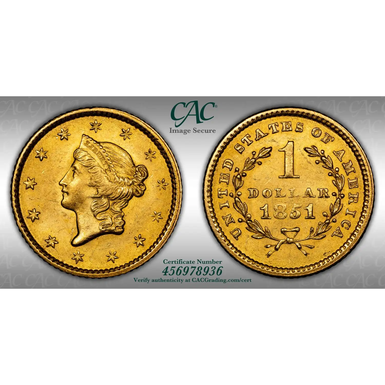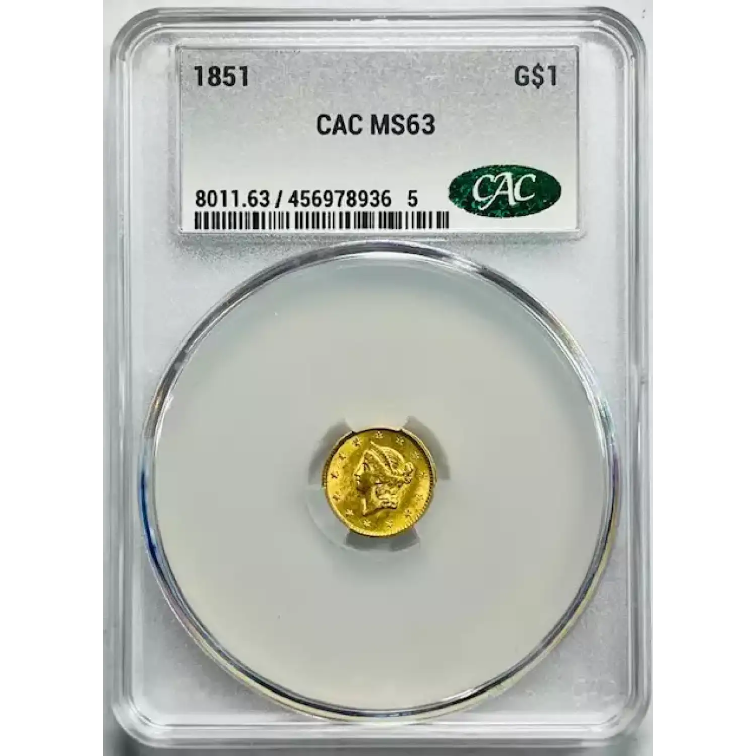 1851 Gold Dollars Liberty Head CACG MS 63 CAC