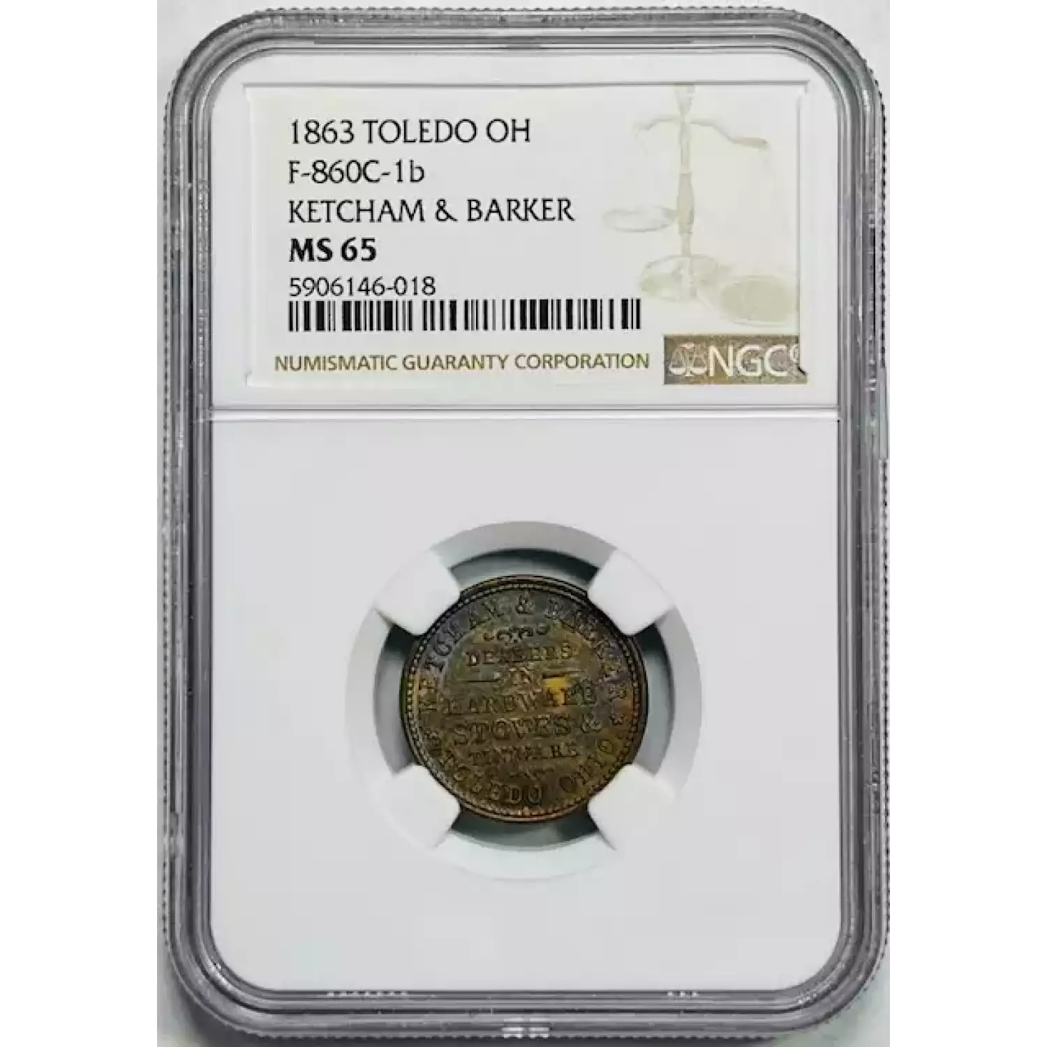 1863 Pvt Tokens - Civil War Tokens Lincoln NGC MS-65 F-860C-1b KETCHAM & BARKER