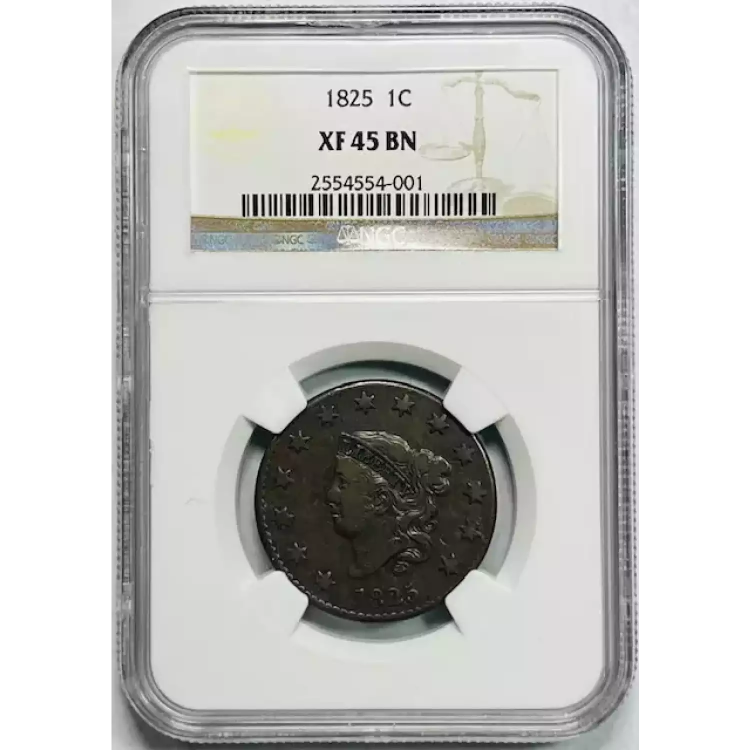 1825 Large Cents Coronet Head NGC XF-45 BN