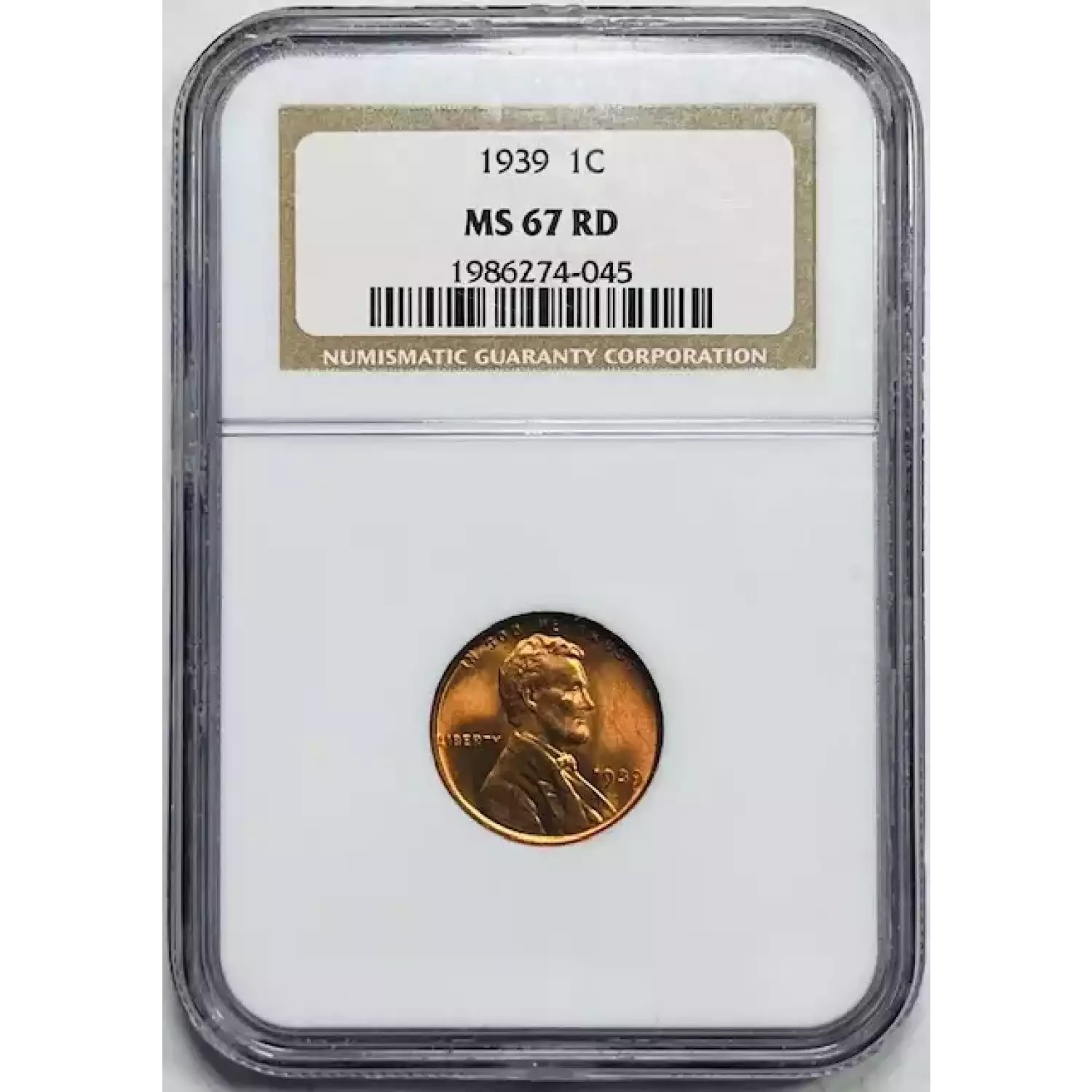 1939 Small Cents Lincoln, Wheat Ears Reverse NGC MS-67 RD
