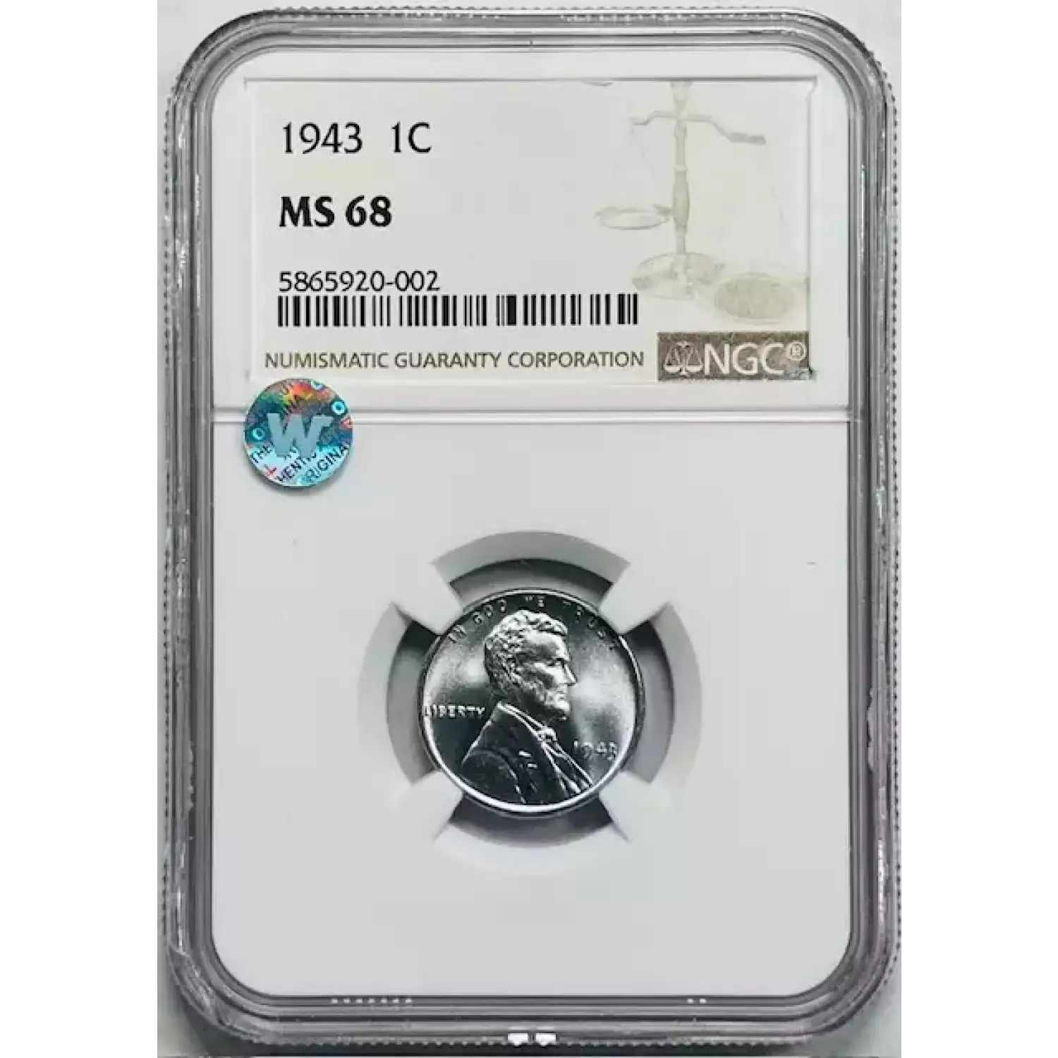 1943 Small Cents Lincoln, Wheat Ears Reverse NGC MS-68 Sight White
