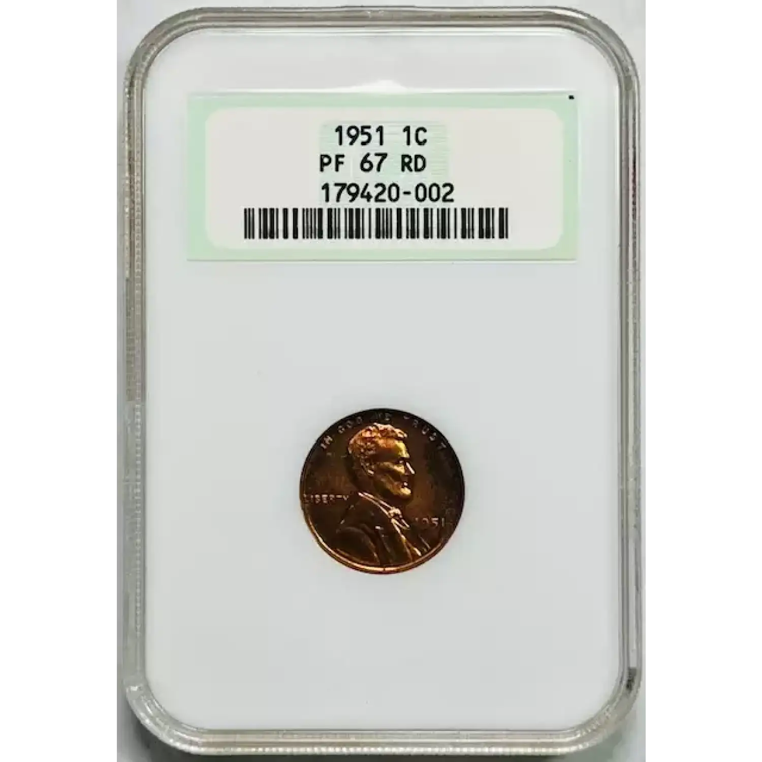 1951 Small Cents Lincoln, Wheat Ears Reverse NGC PF-67 RD Old Holder!
