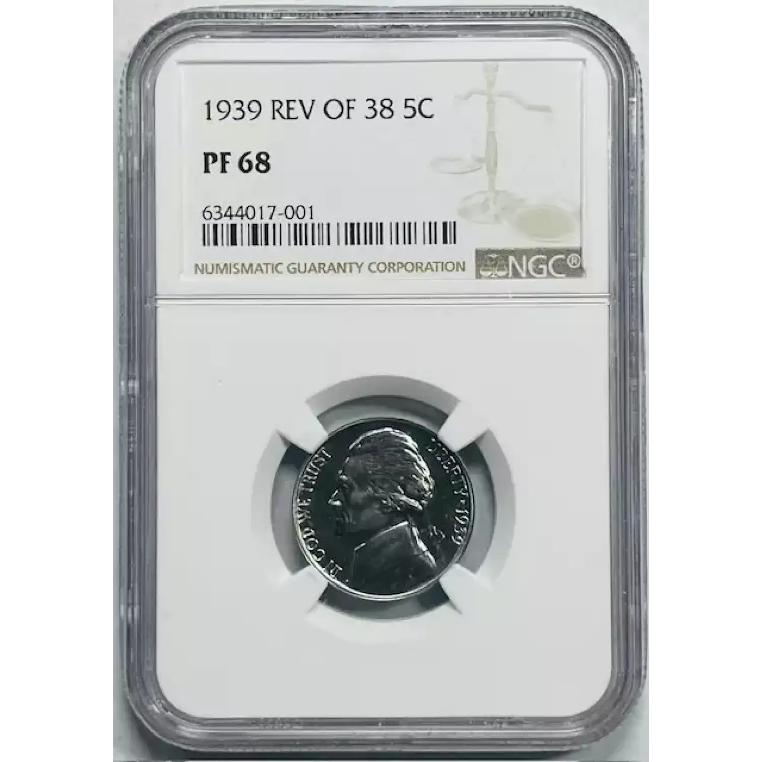 1939 Nickel Jefferson NGC PF-68 Rev of 38 White PQ!