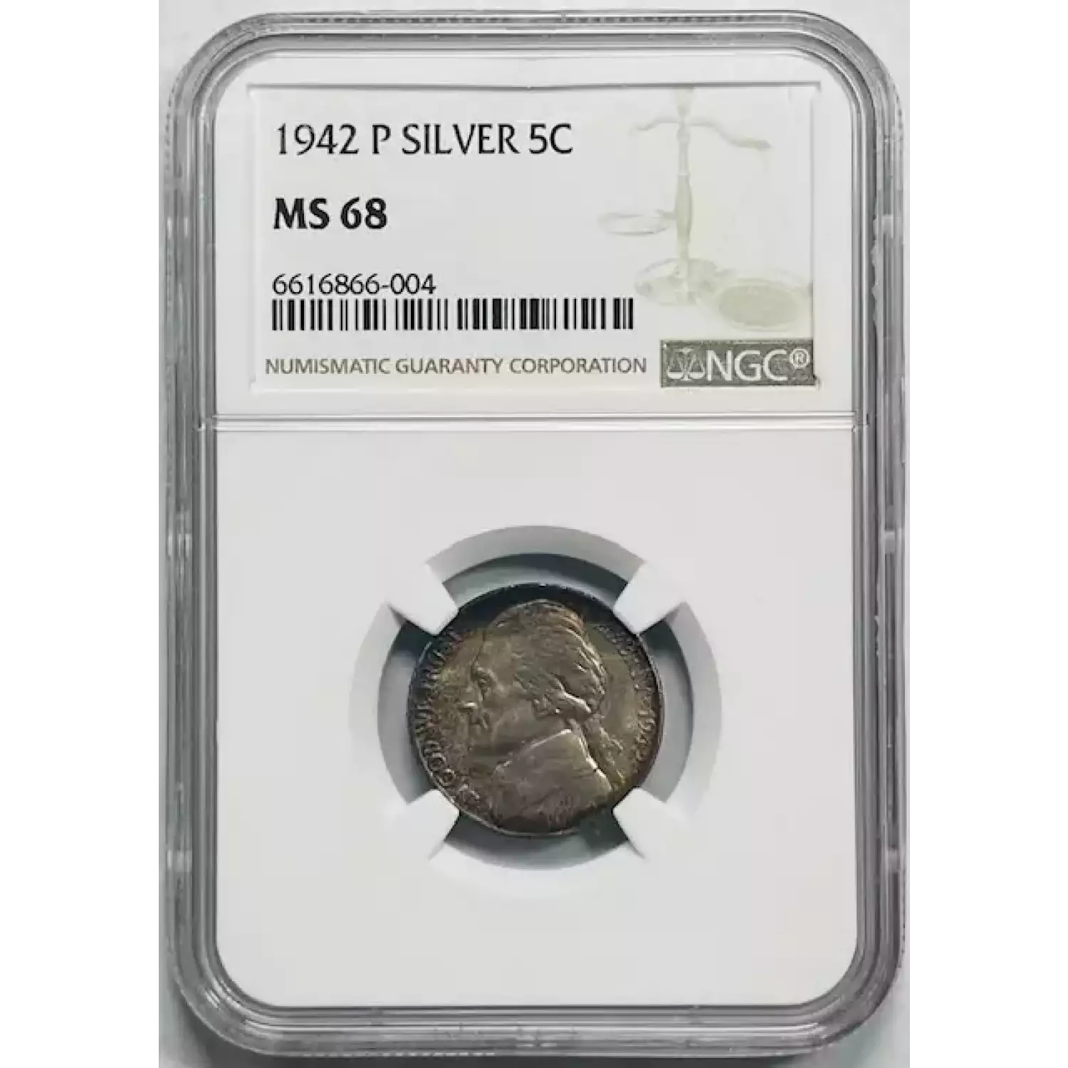 1942 Nickel Jefferson NGC MS-68 Silver Wow Original!