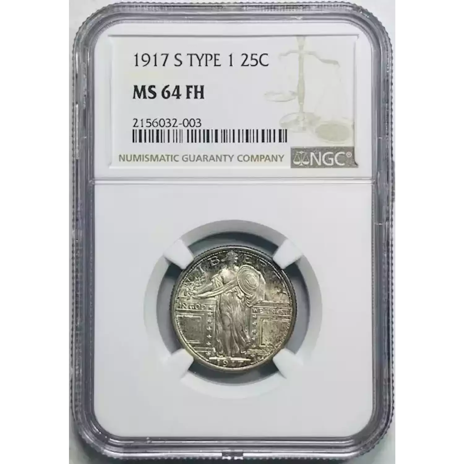 1917-S Standing Liberty Quarter NGC MS-64 FH Type 1 Lots of Luster!