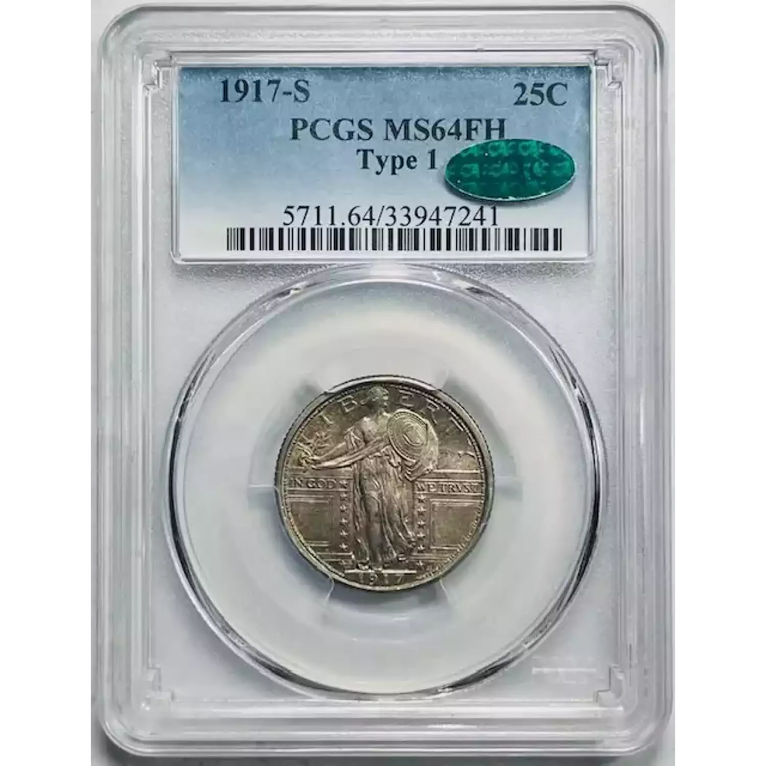 1917-S Standing Liberty Quarter PCGS MS-64 FH Type 1 Low CAC Pop! CAC