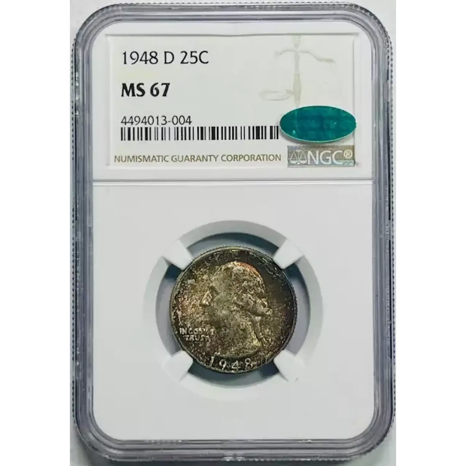 1948-D Washington Quarter NGC MS-67 Colors! CAC