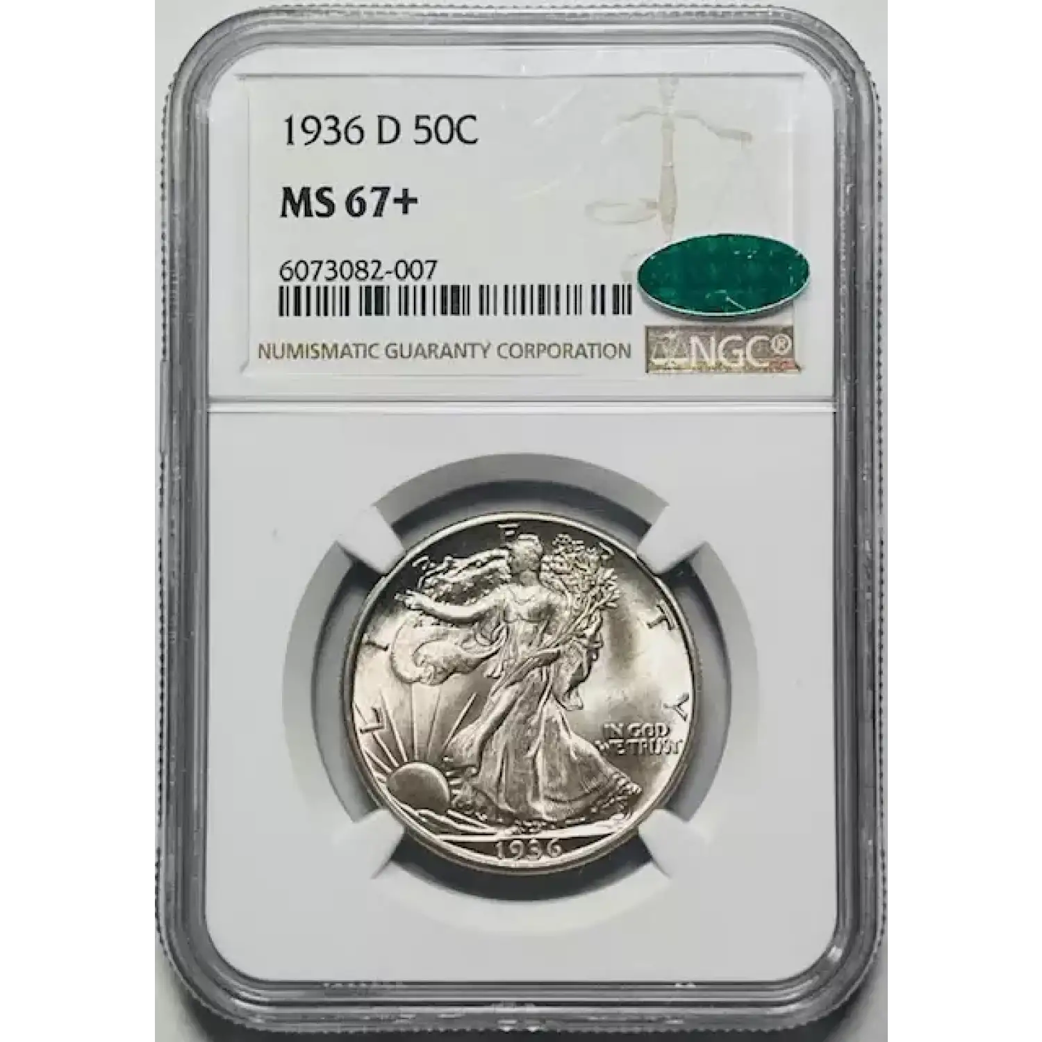 1936-D Walking Liberty Half Dollar NGC MS-67+ White! CAC