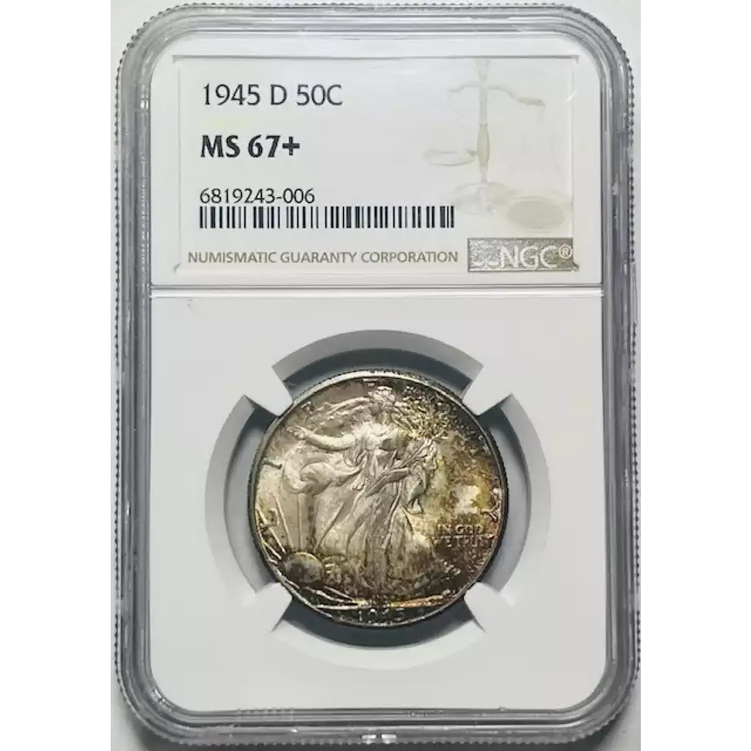 1945-D Walking Liberty Half Dollar NGC MS-67+ Colors!
