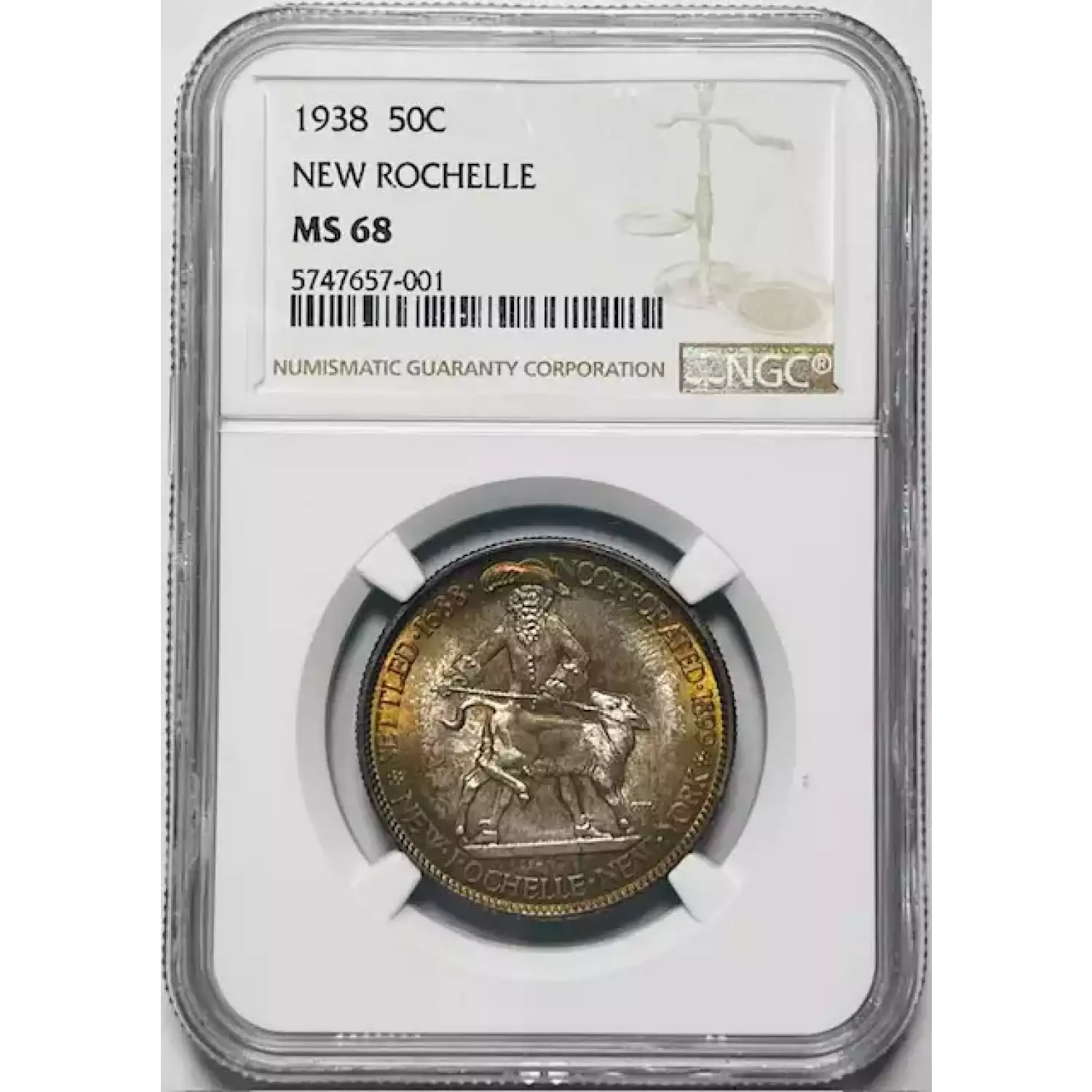 1938 Classic Commemorative New Rochelle, New York, 250th Anniversary NGC MS-68 Must See!