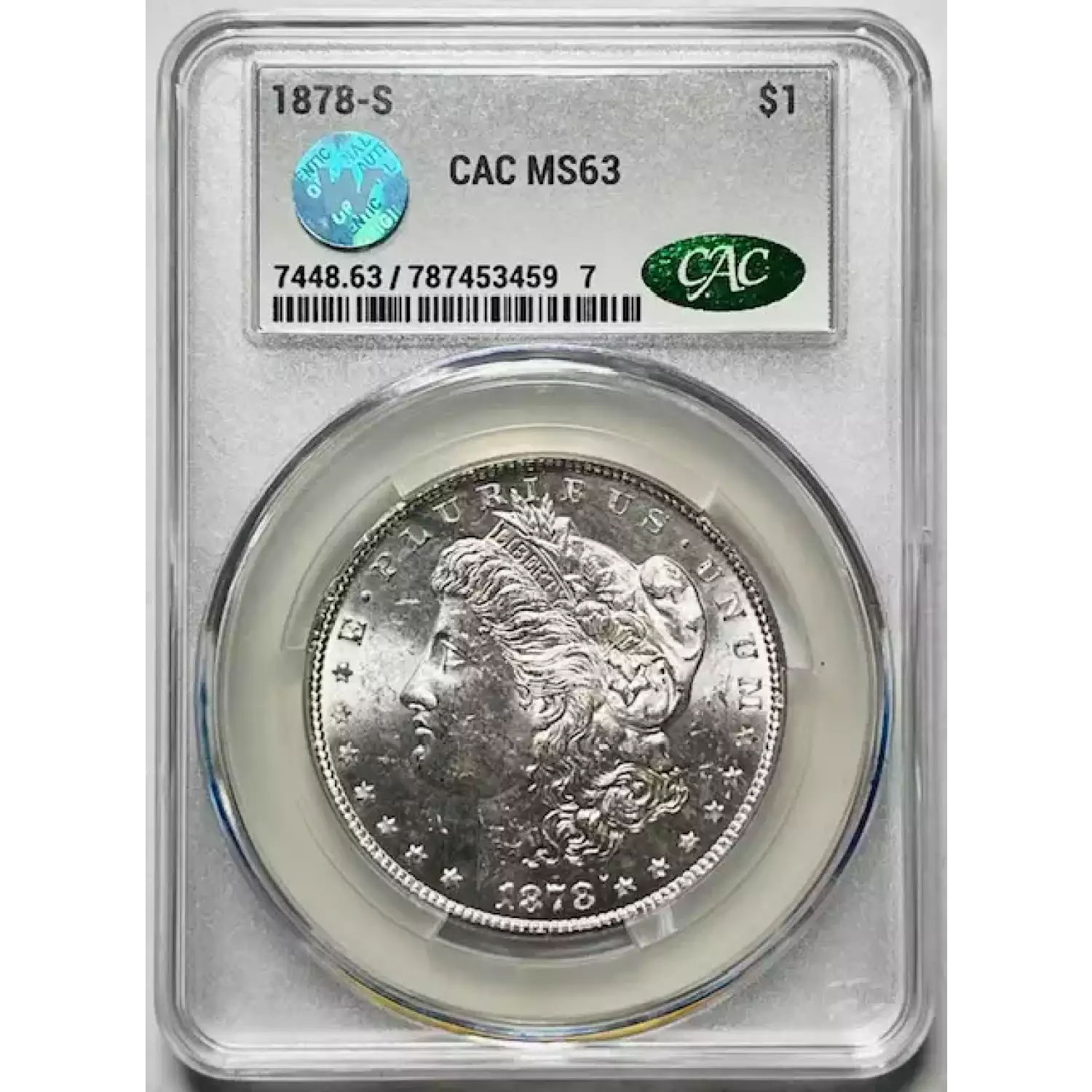 1878-S-S Morgan Silver Dollar CACG MS 63 CAC, Sight White