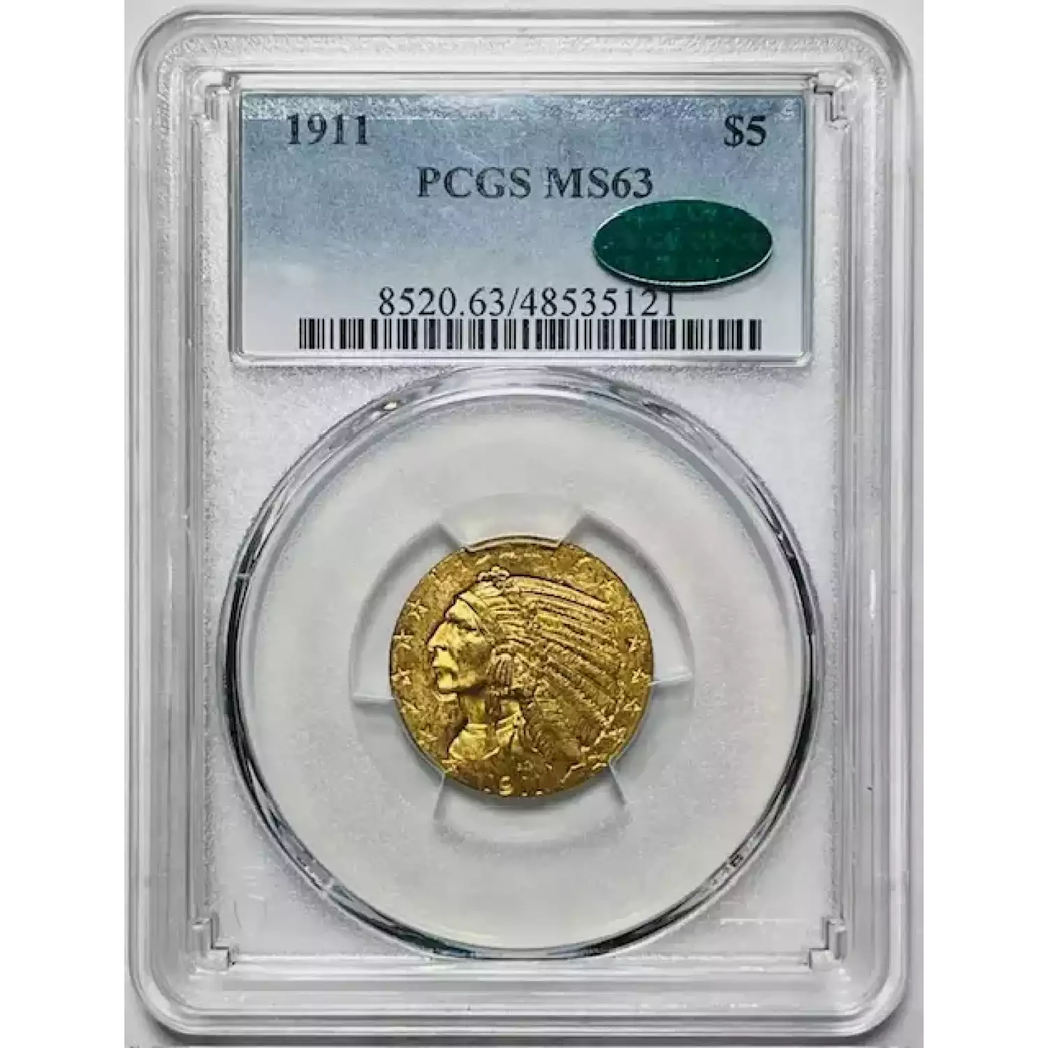 1911 Gold Half Eagles $5 Indian Head PCGS MS-63 Low CAC Pop! CAC