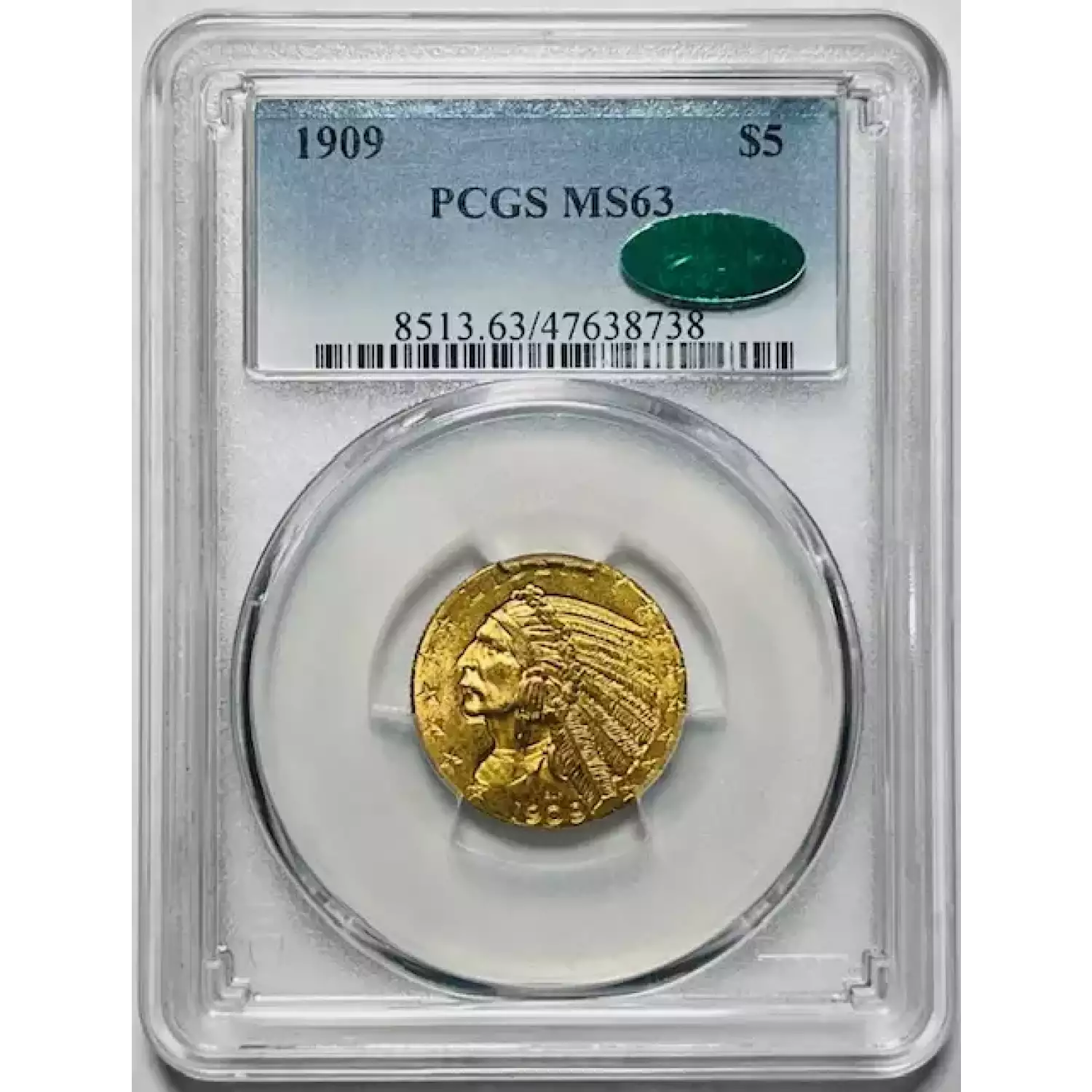 1909 Gold Half Eagles $5 Indian Head PCGS MS-63 CAC