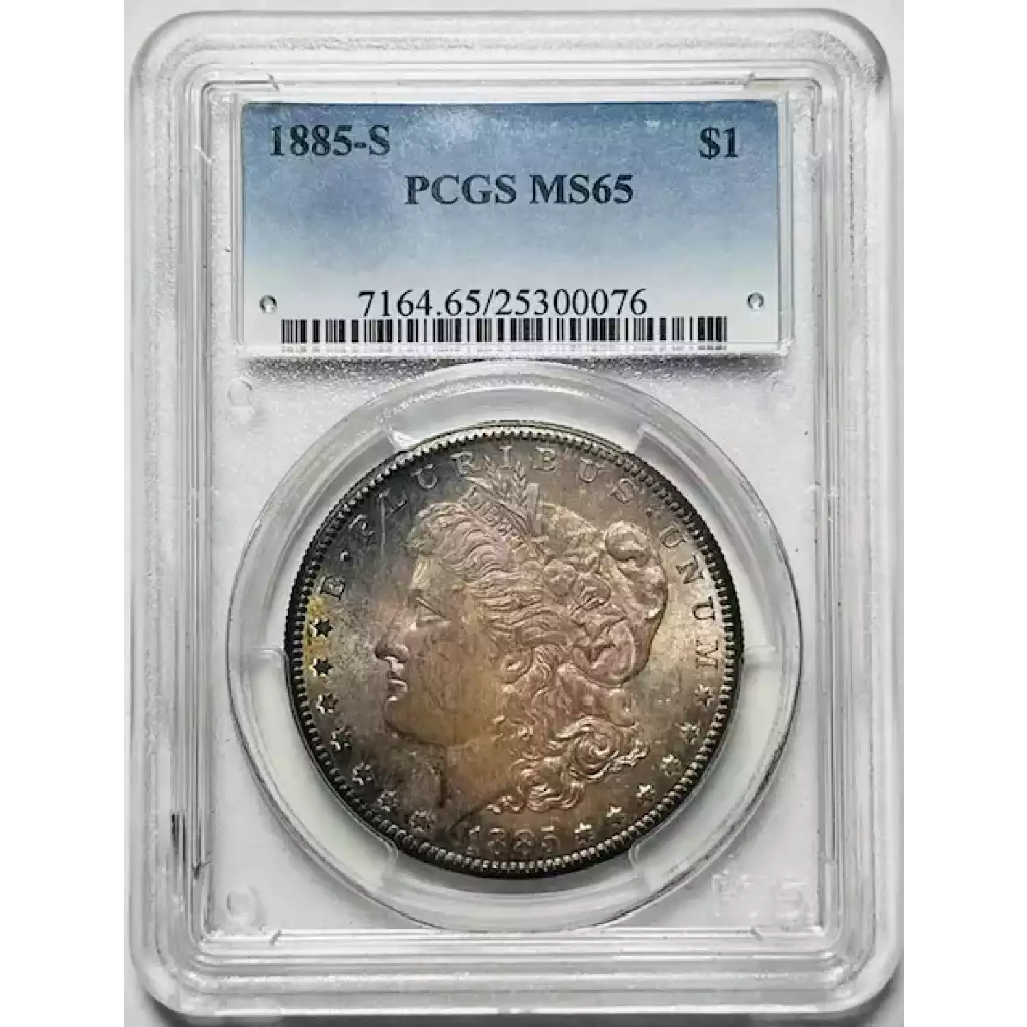 1885-S Morgan Silver Dollar PCGS MS-65 Cool Colors