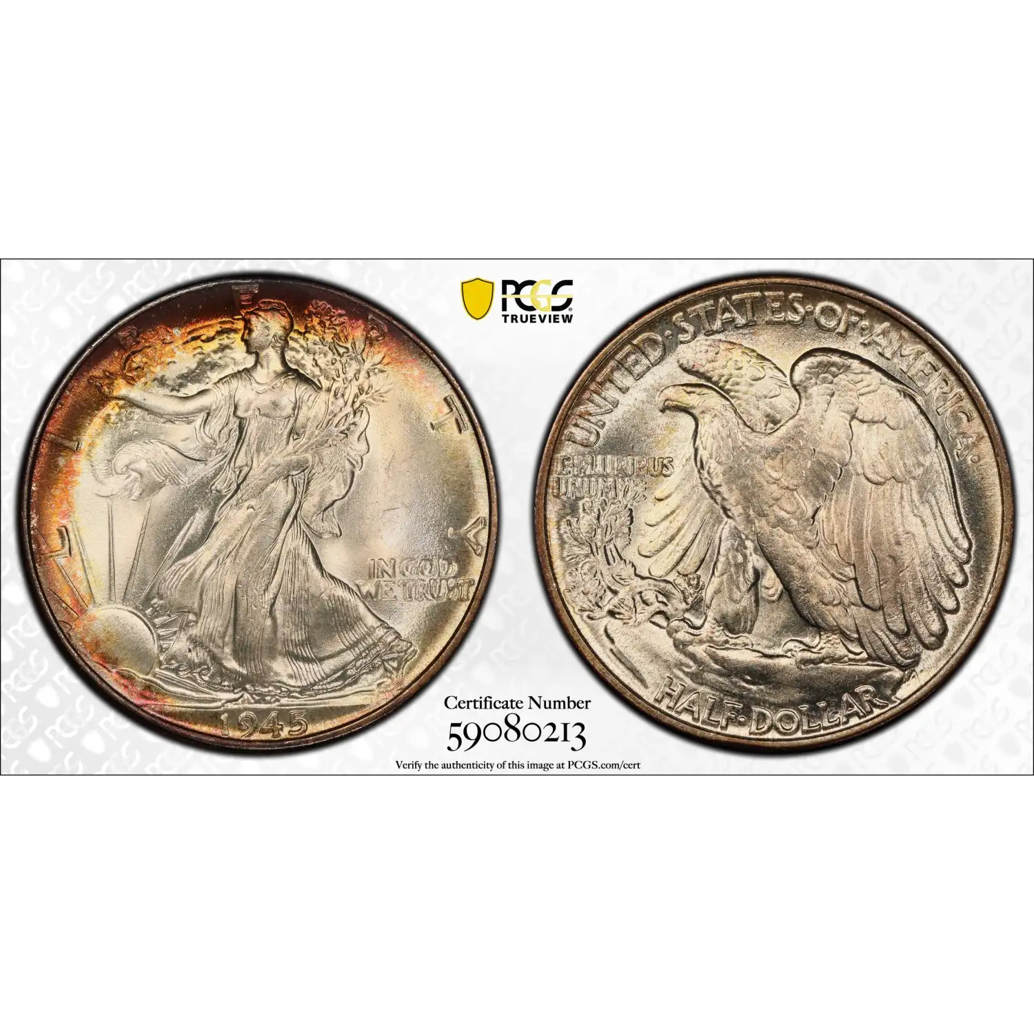 1945 Walking Liberty Half Dollar PCGS MS-67 Original!