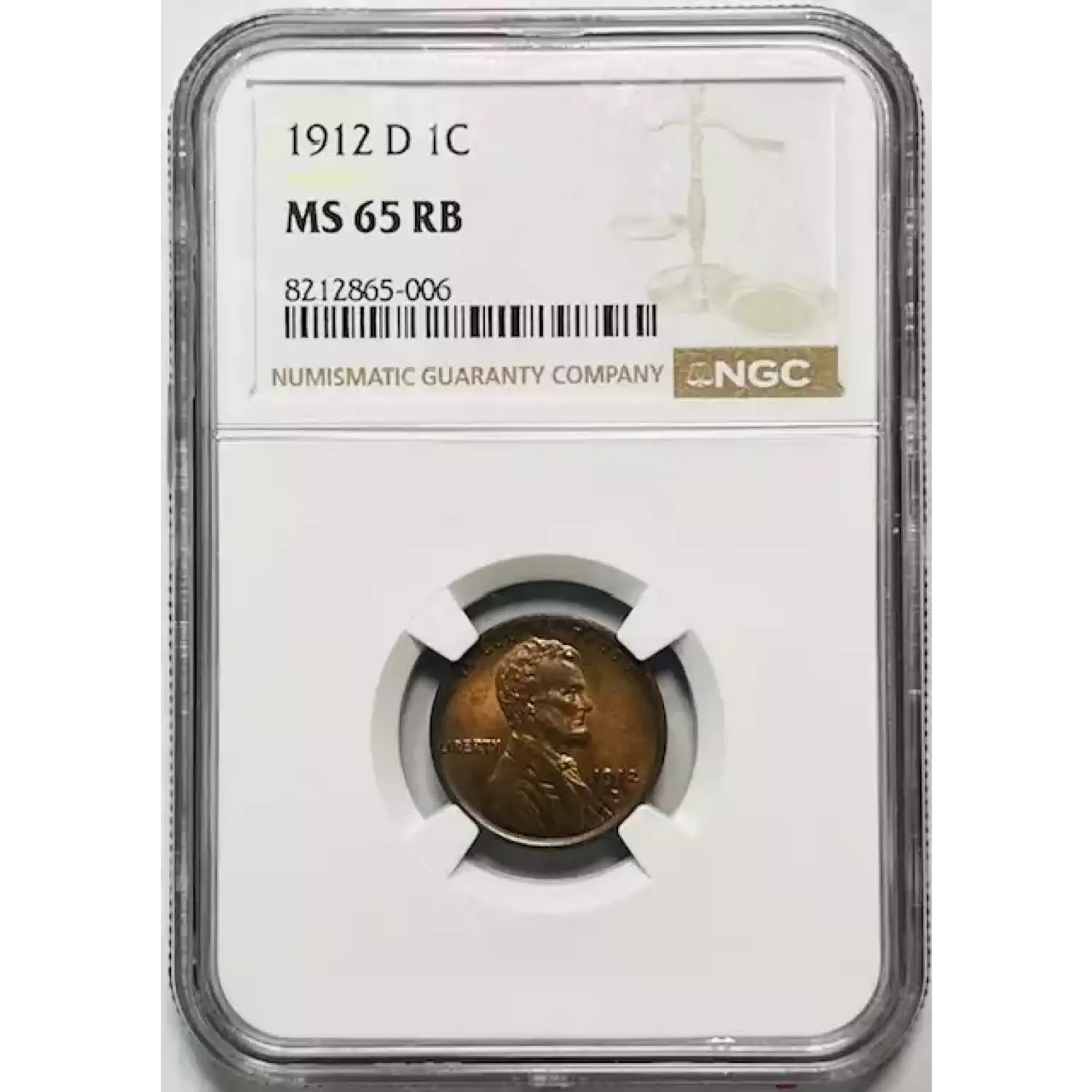 1912-D Small Cents Lincoln, Wheat Ears Reverse NGC MS-65 RB