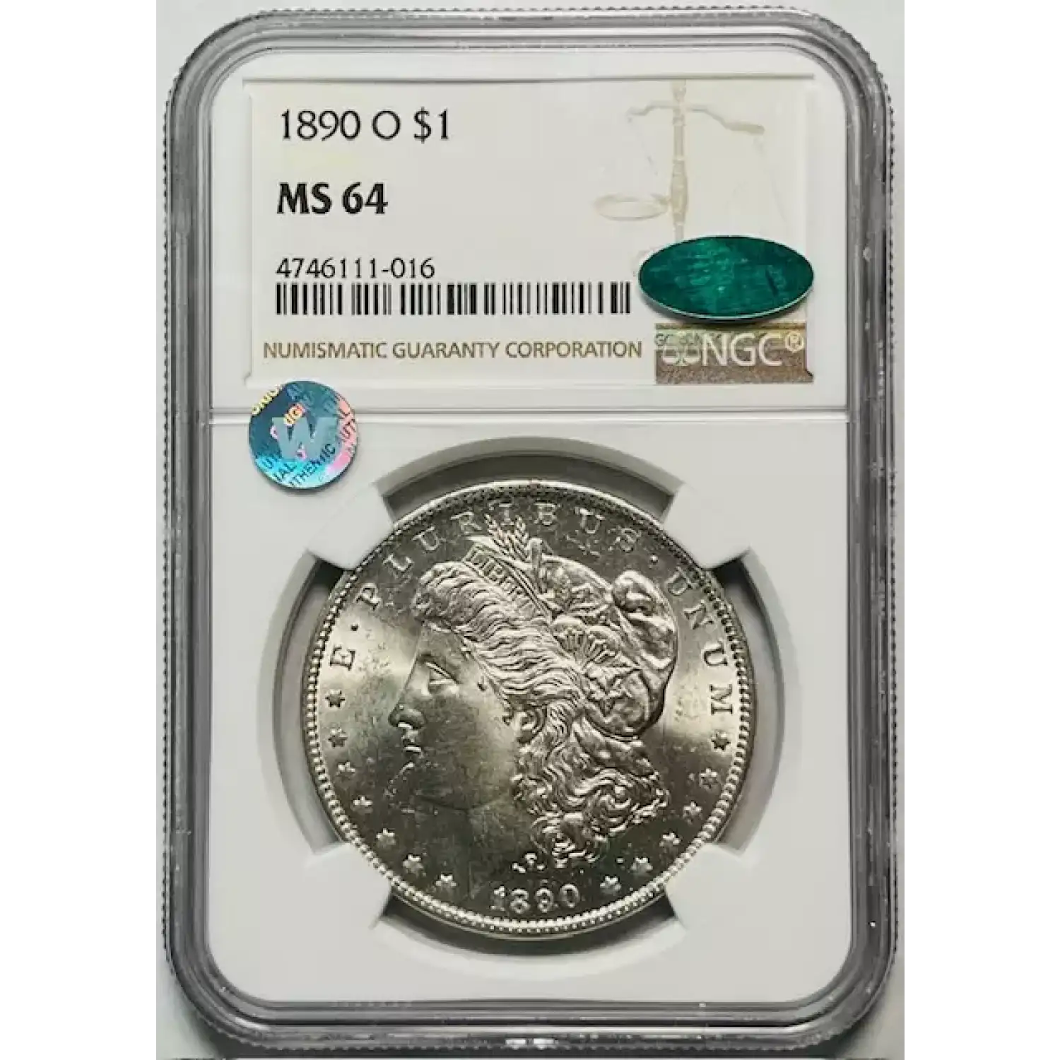 1890-O Morgan Silver Dollar NGC MS-64 CAC, Sight White