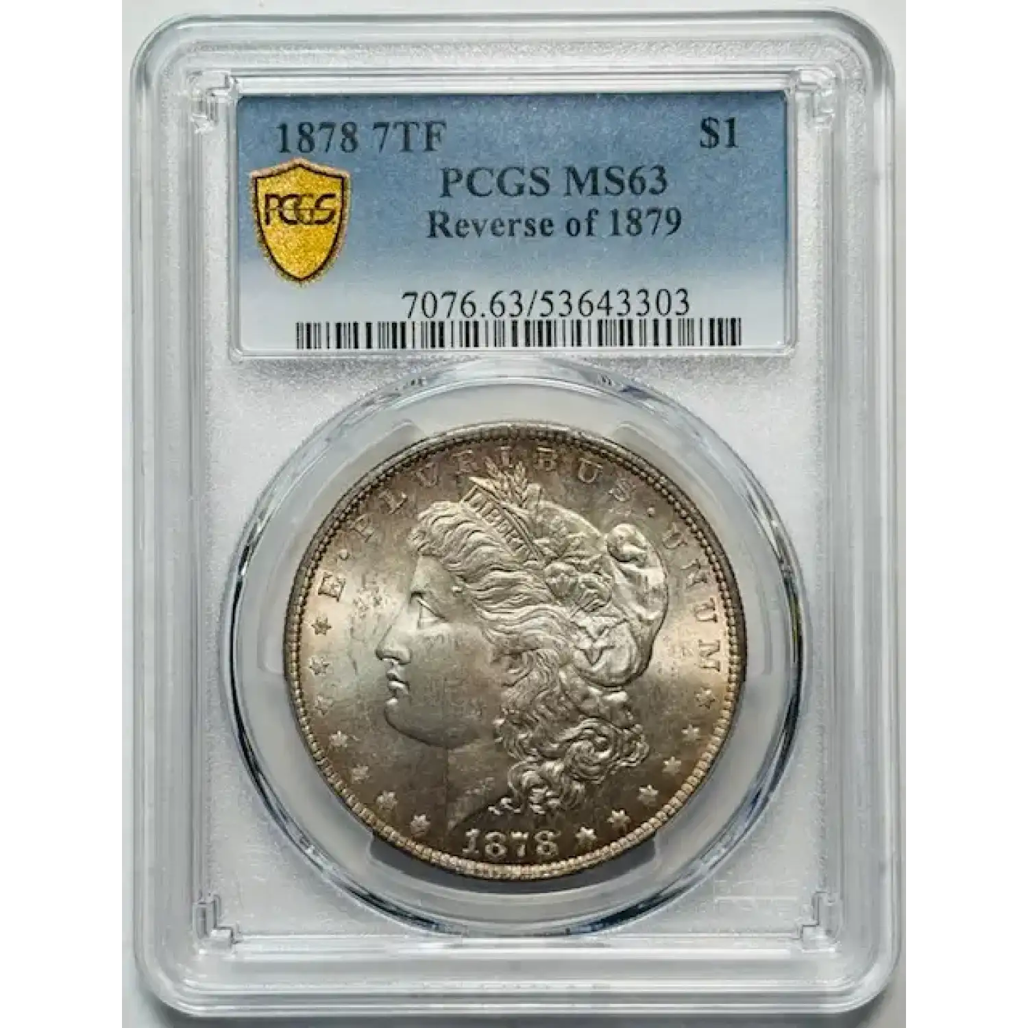 1878 Morgan Silver Dollar PCGS MS-63 7TF, Reverse of 1879