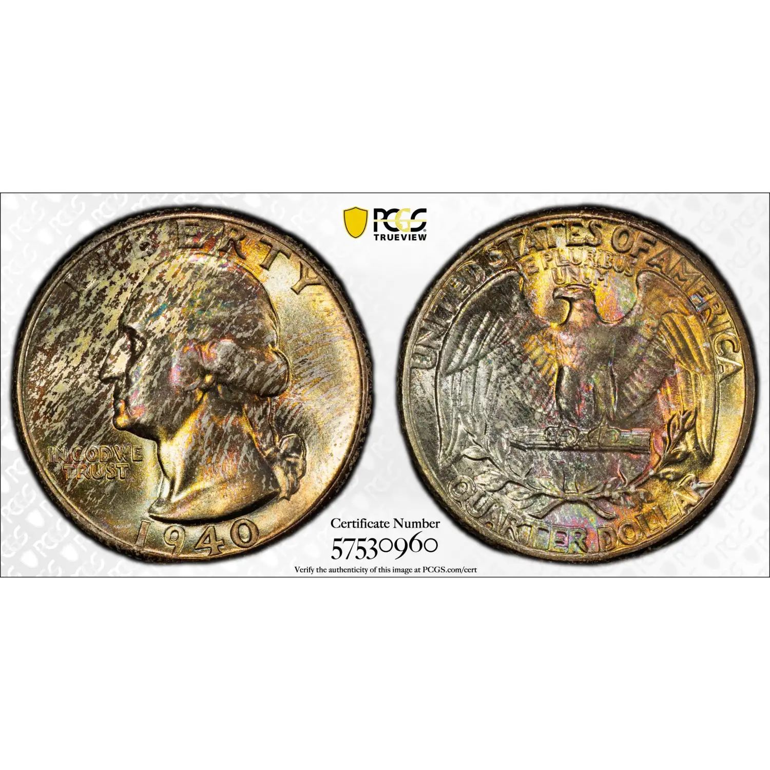 1940 Washington Quarter PCGS MS-67 WOW Color!