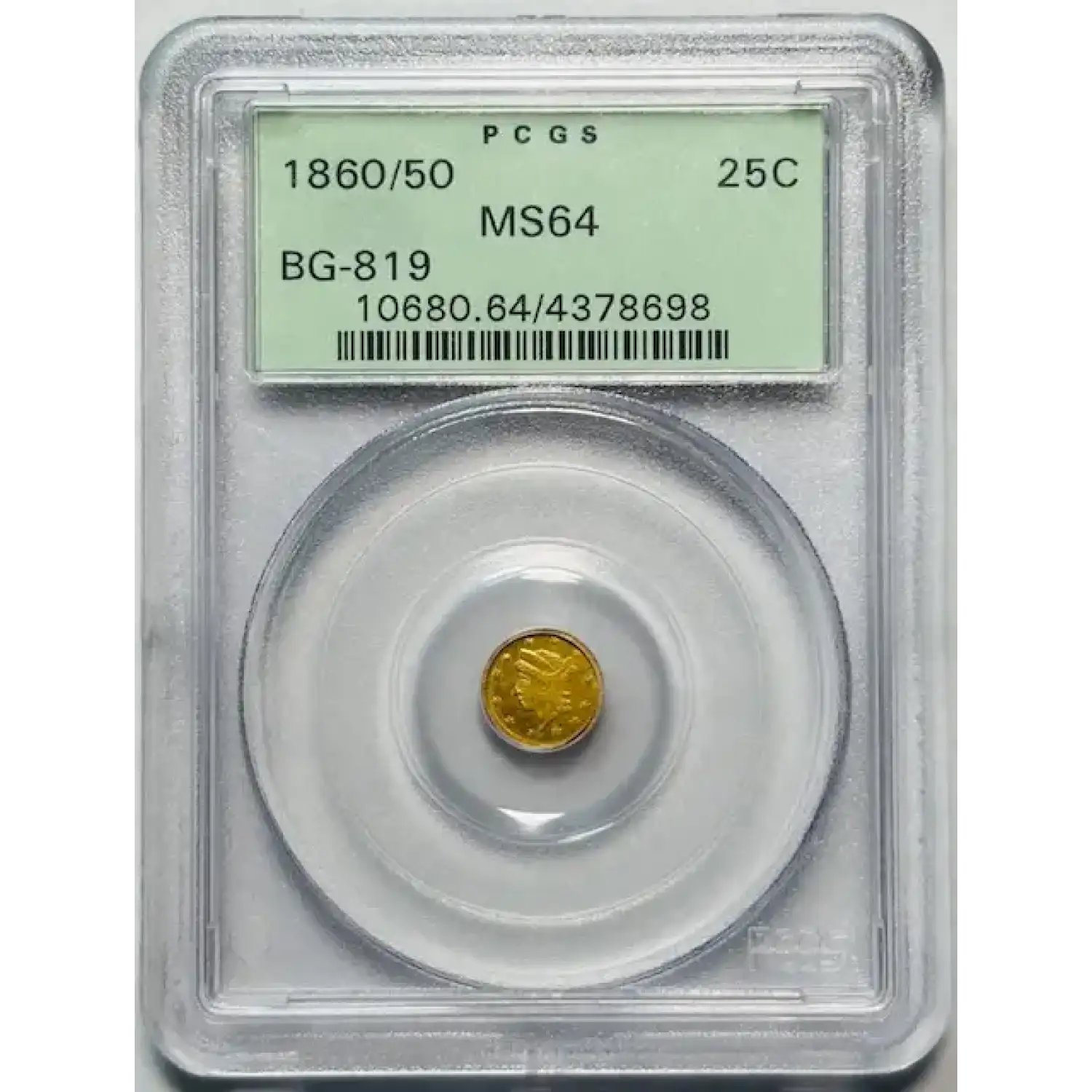 1860/50 Liberty Head Round California Gold 1/4 Dollar PCGS MS-64 BG-819 Old Green Holder