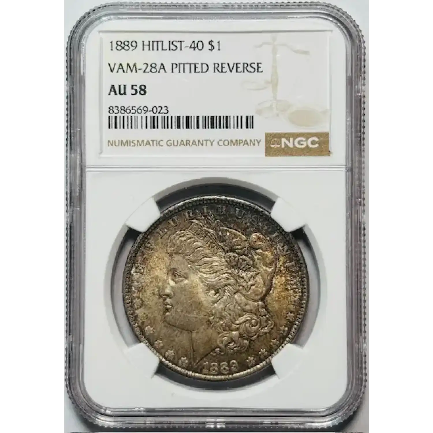 1889 Morgan Silver Dollar NGC AU-58 VAM-28A Pitted Reverse