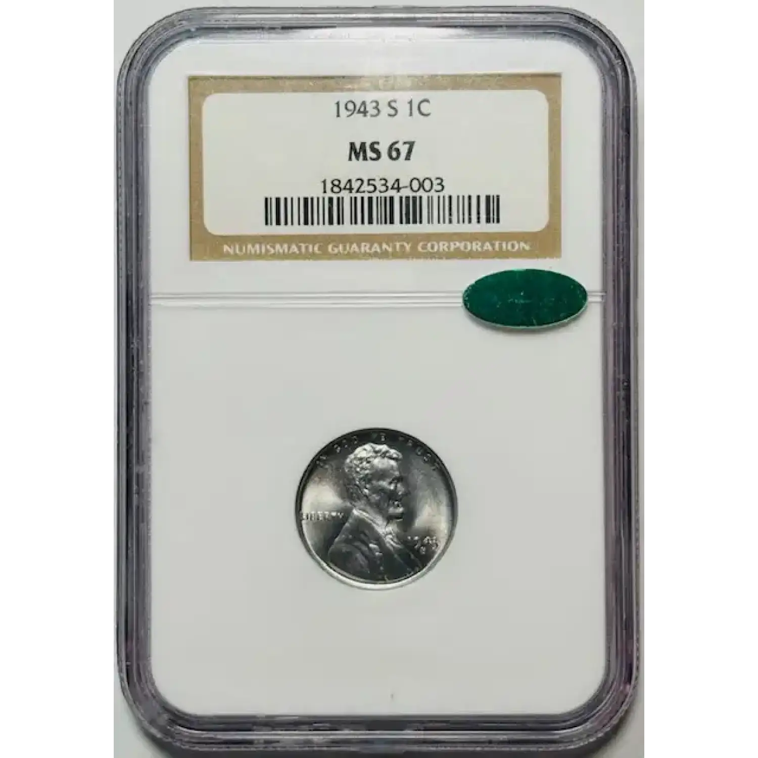 1943-S Small Cents Lincoln, Wheat Ears Reverse NGC MS-67 CAC