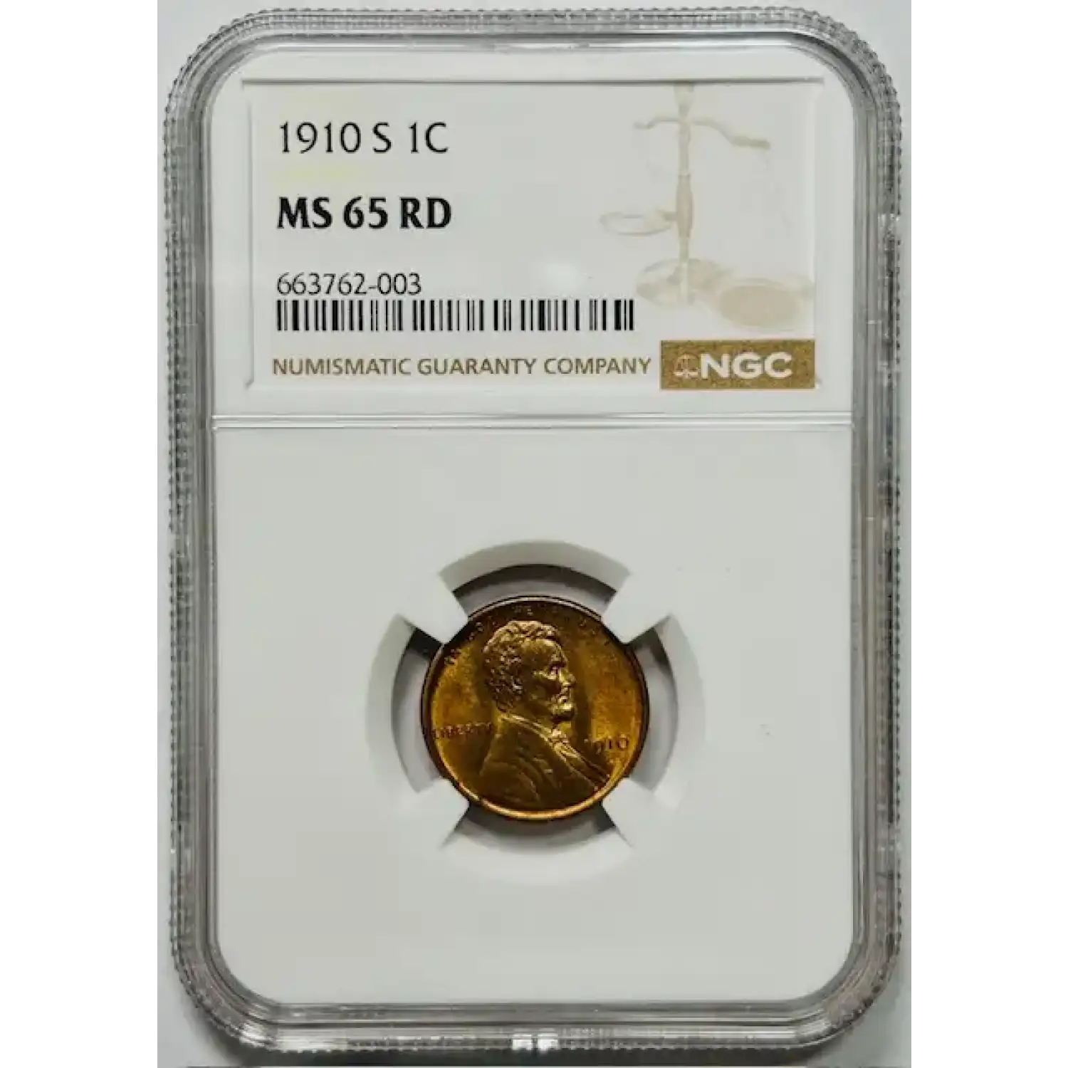1910-S Small Cents Lincoln, Wheat Ears Reverse NGC MS-65 RD