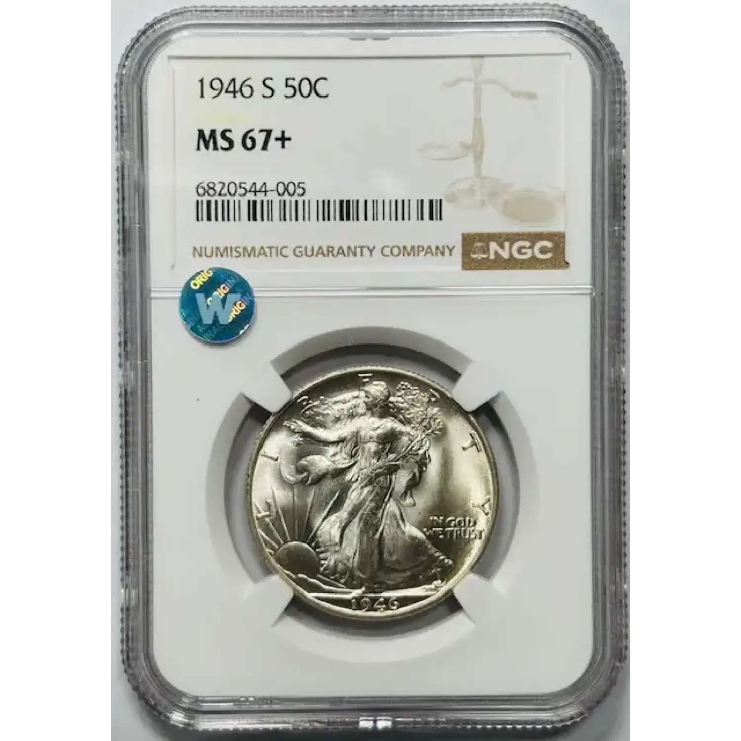 1946-S Walking Liberty Half Dollar NGC MS-67+ Tied Top Pop! Sight White