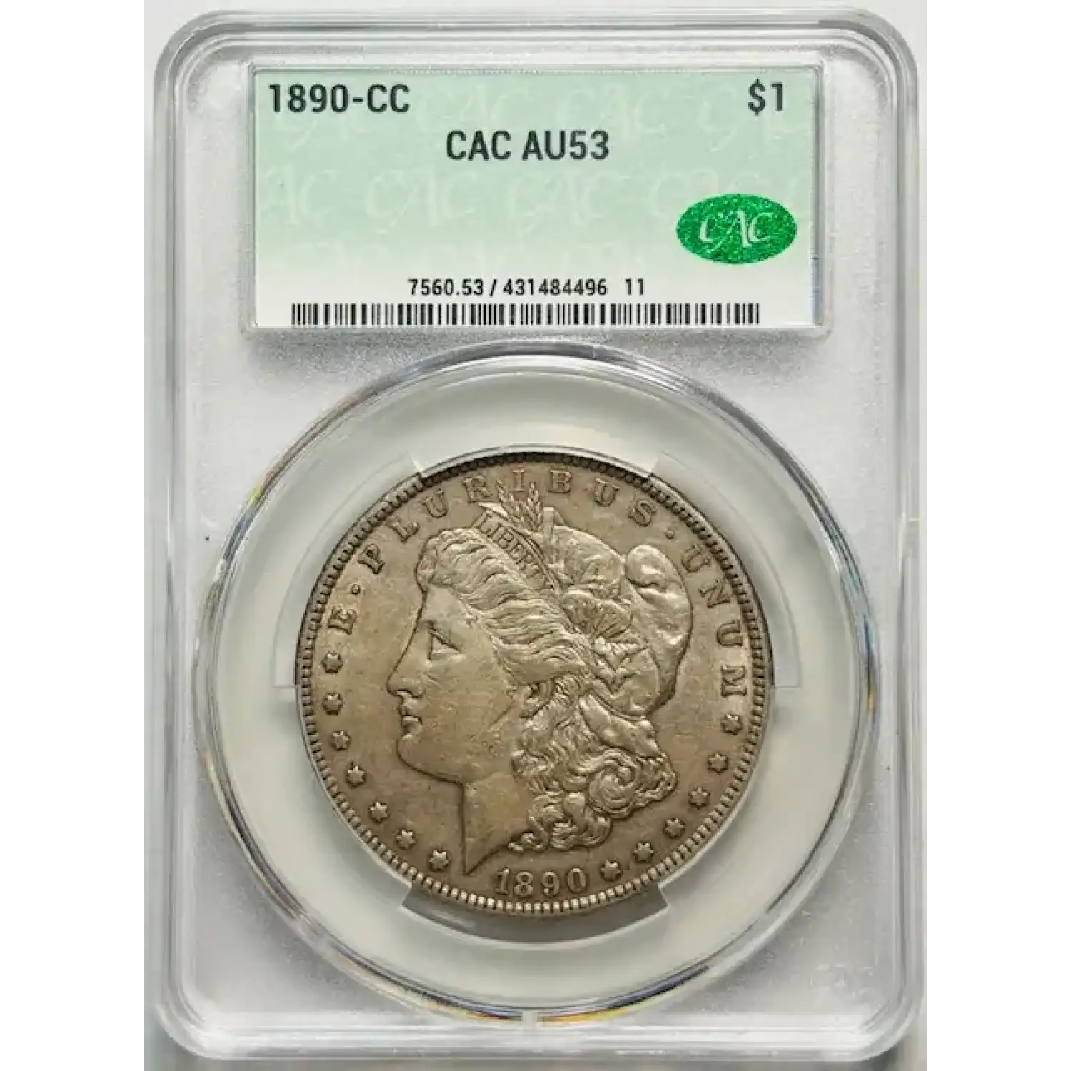 1890-CC Morgan Silver Dollar CACG AU 53 CAC