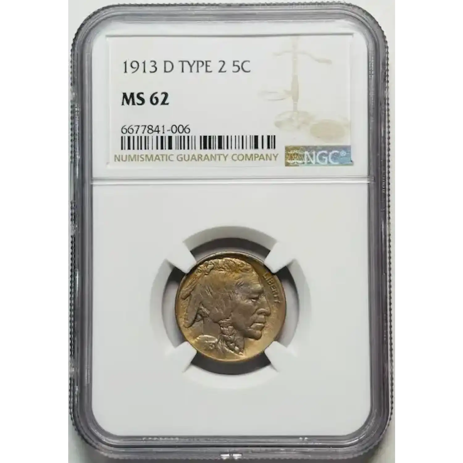 1913-D Buffalo Nickel NGC MS-62 Type 2 Pretty Toned!