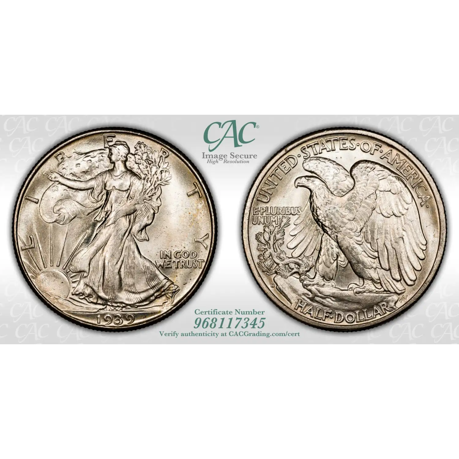 1939-D Walking Liberty Half Dollar CACG MS 66 CAC