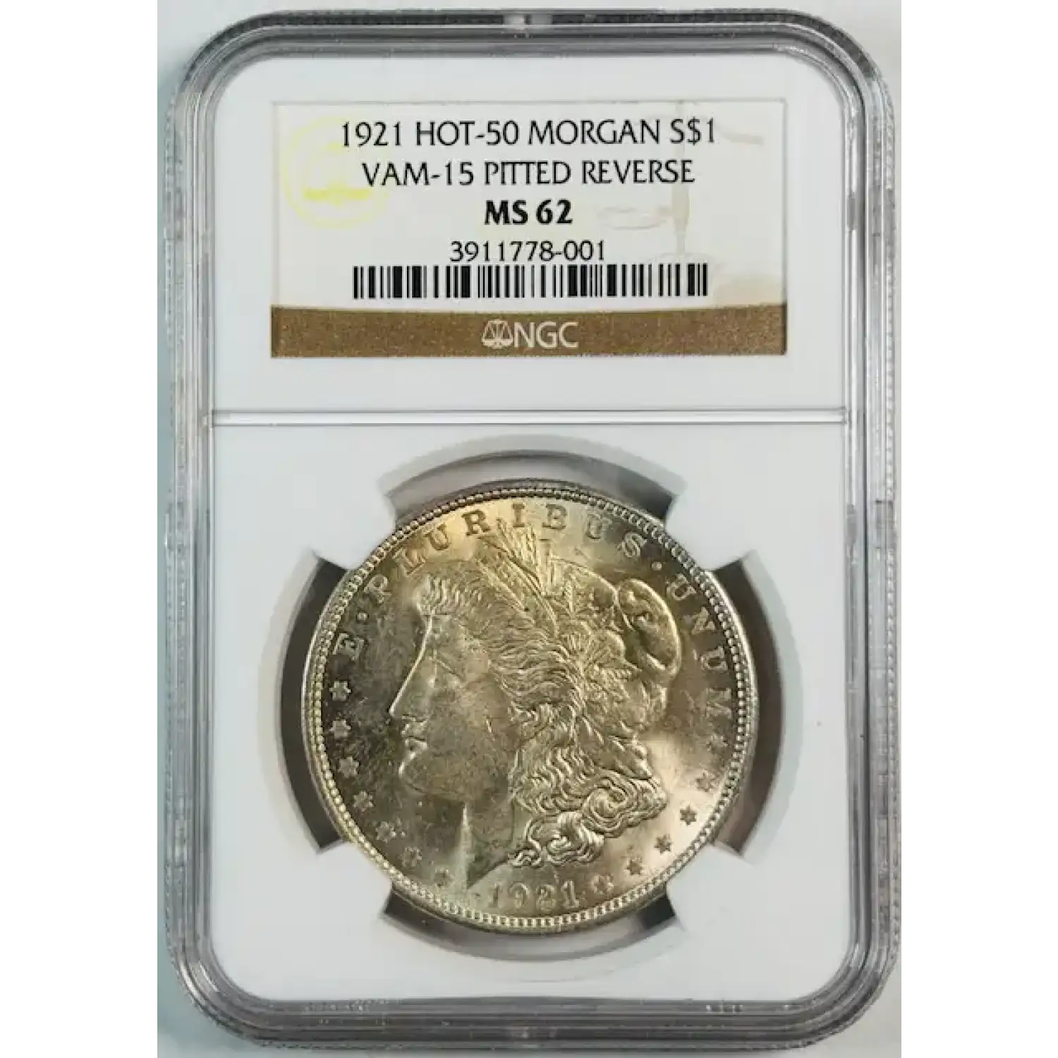 1921 Morgan Silver Dollar NGC MS-62 HOT-50 VAM-15 PITTED REVERSE