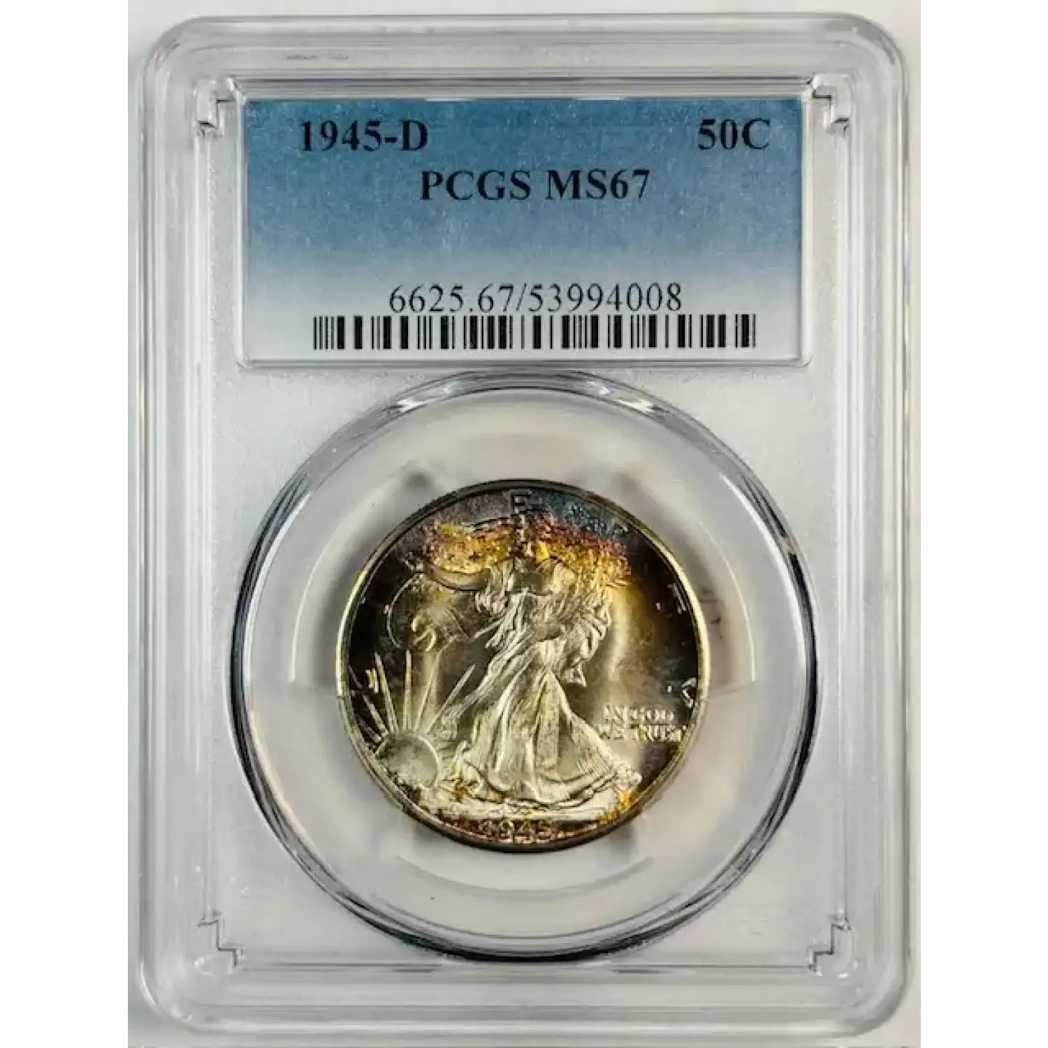 1945-D Walking Liberty Half Dollar PCGS MS-67 Pretty Toning!