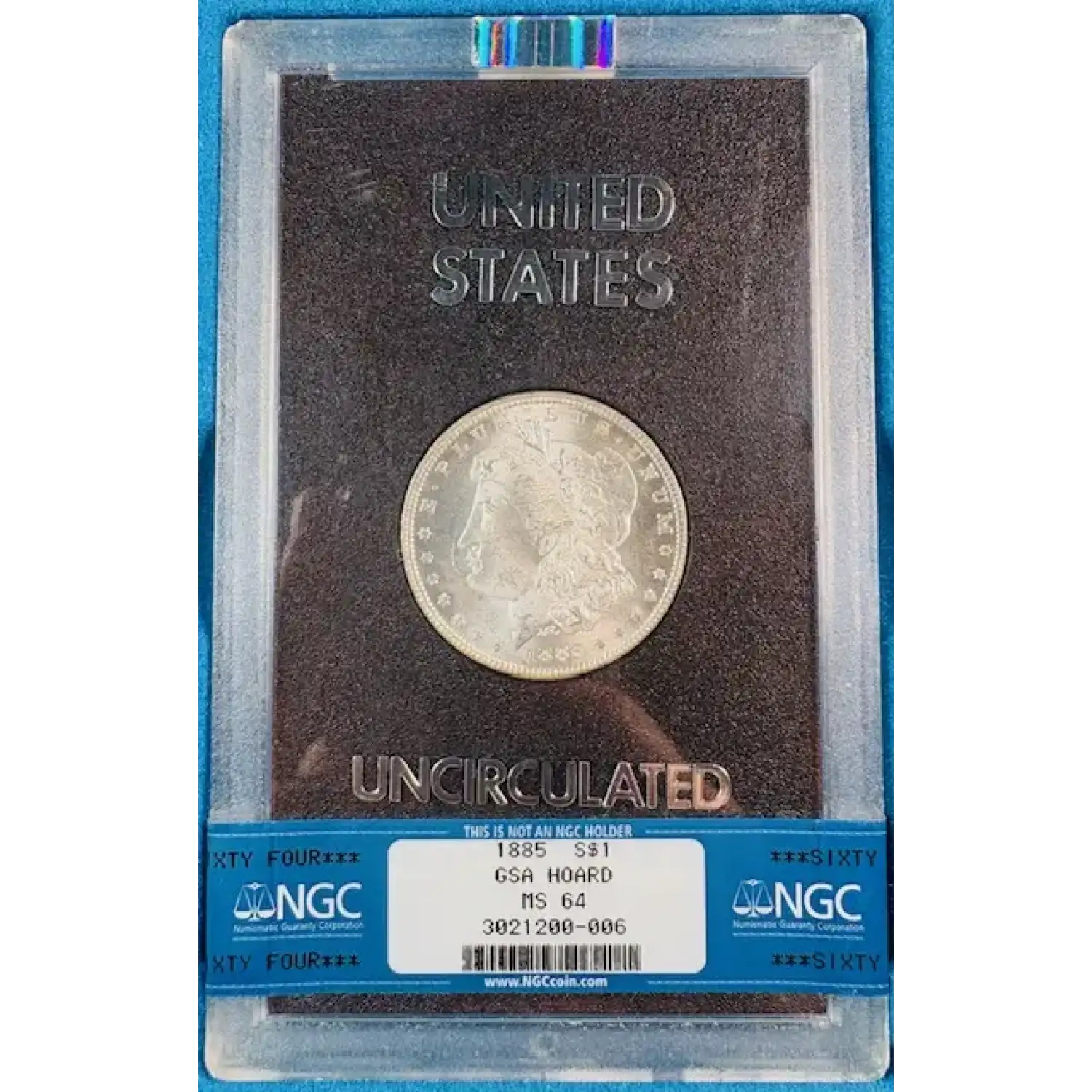 1885 Morgan Silver Dollar NGC MS-64 GSA Hoard OGP RARE!