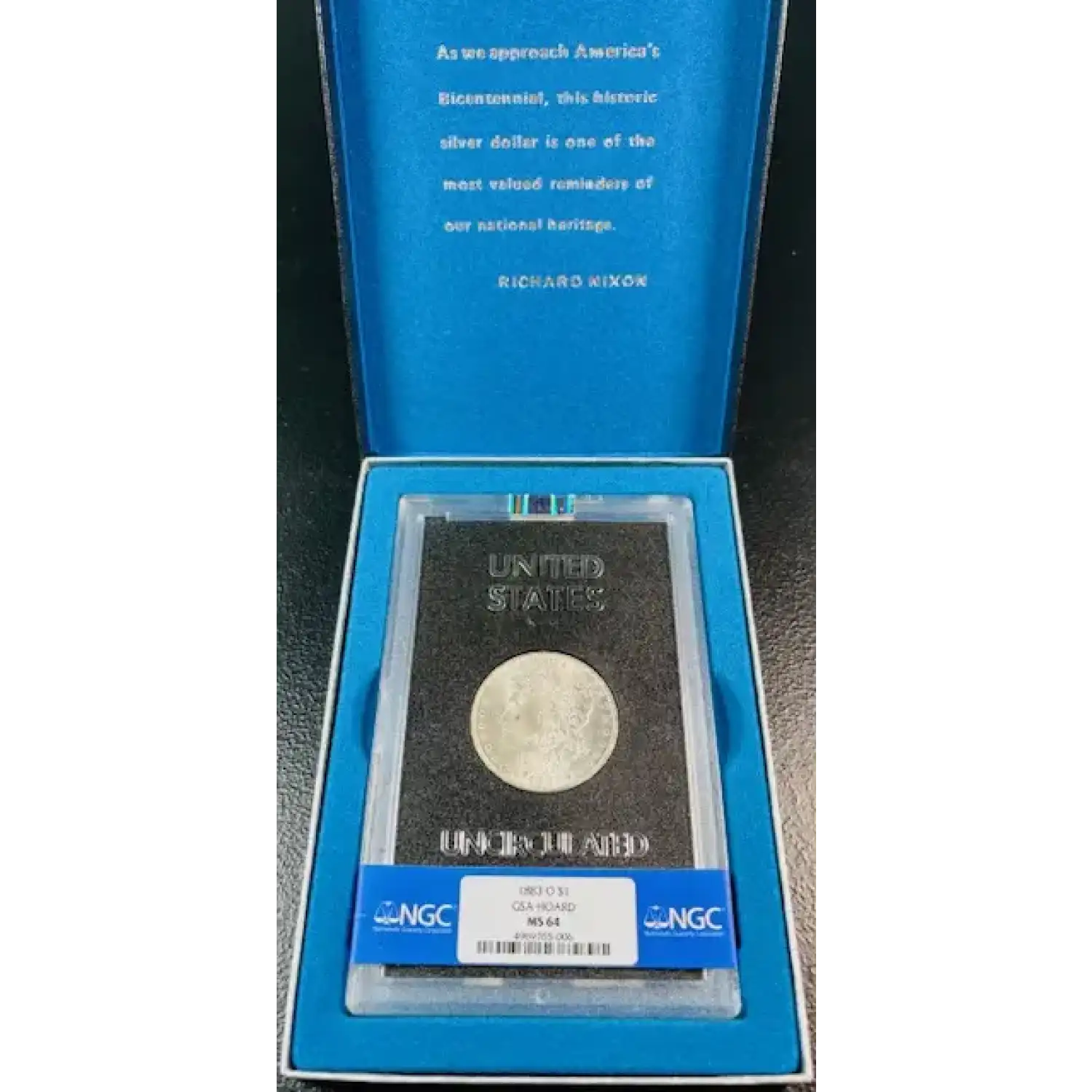 1883-O Morgan Silver Dollar NGC MS-64 GSA Hoard OGP Rare!